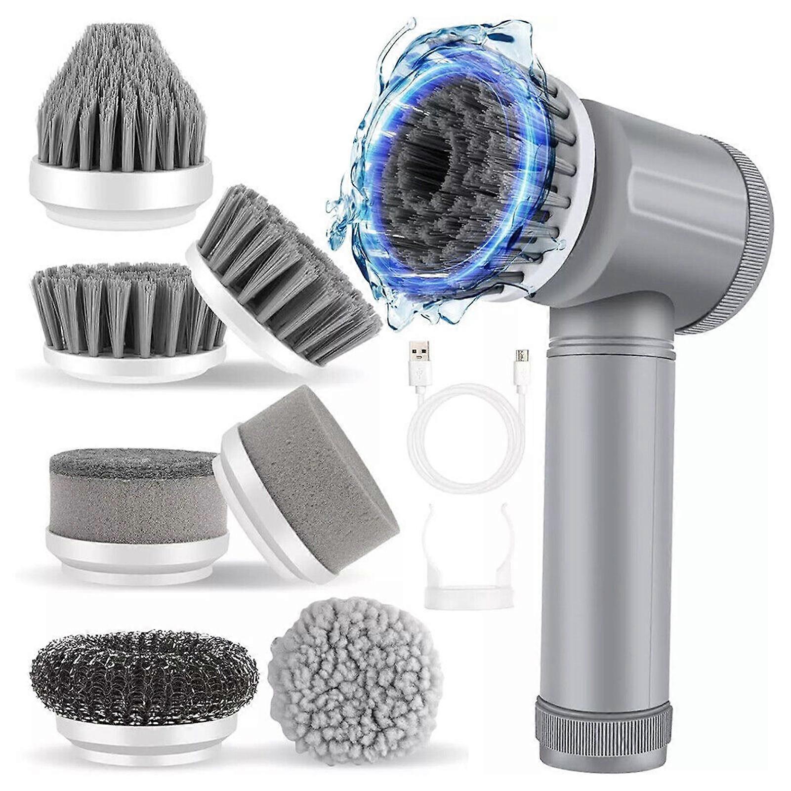 Portable Electric Spins Scrubber with 5 Replaceable Brush Heads for Cleaning Corner Tile