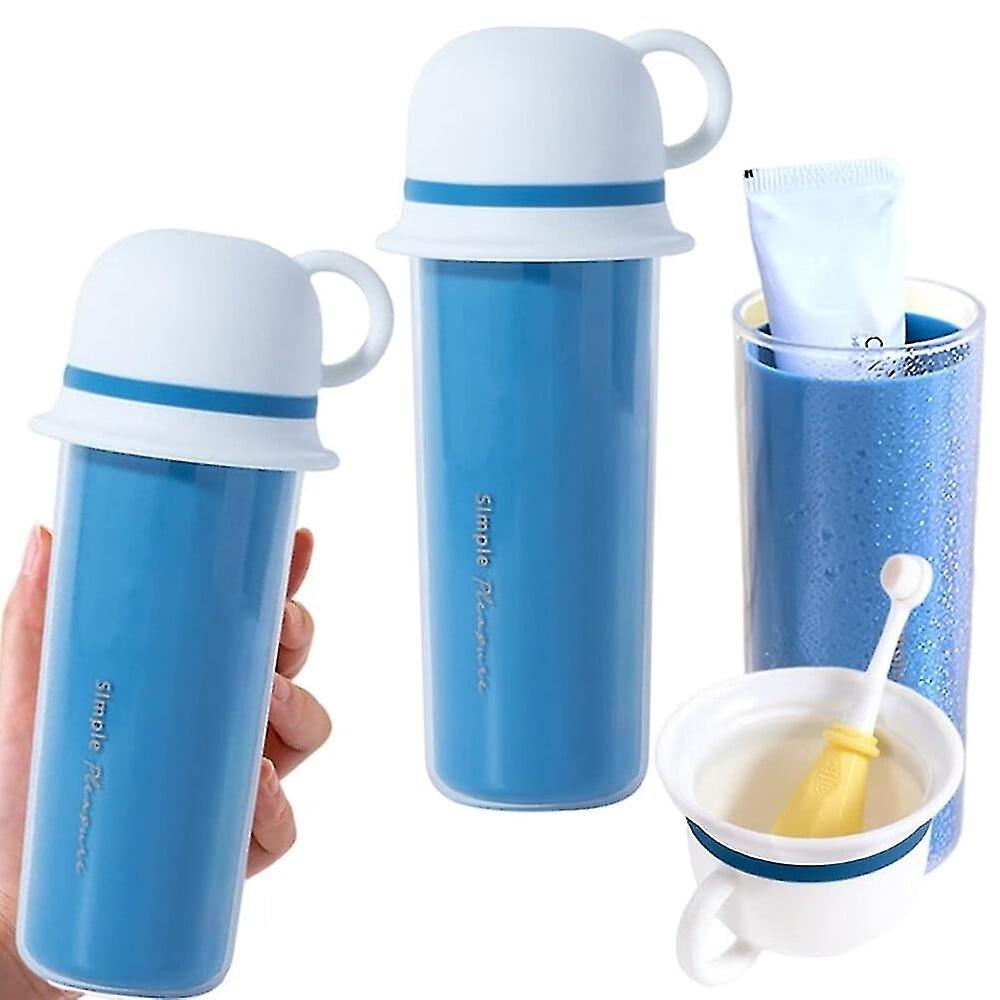 Portable 3-in-1 toothbrush cup, blue, mouthwash, camping, travel toothbrush holder with toothpaste s