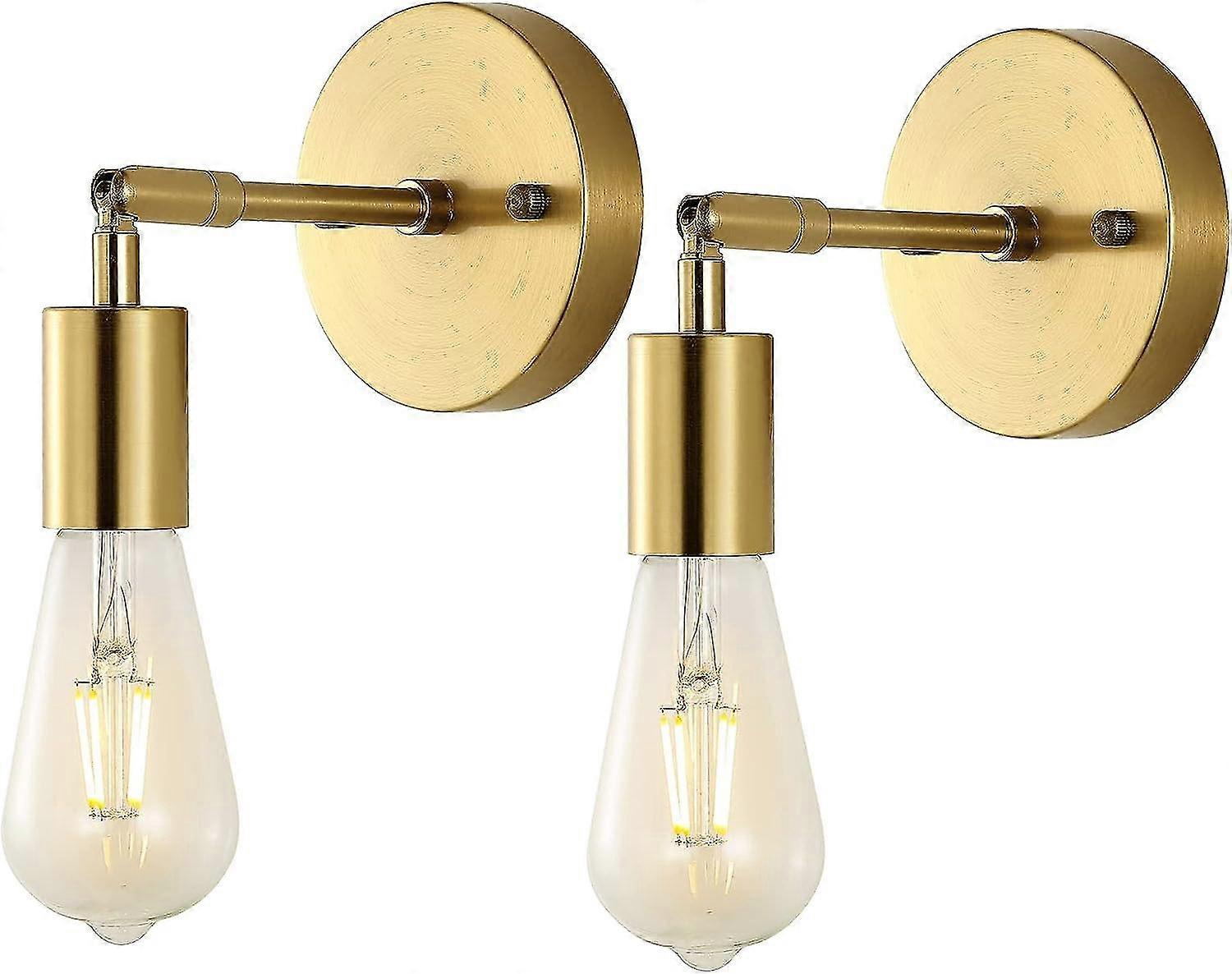 Set Of 2 Industrial Retro Brushed Brass Bathroom Wall Sconces On Pole (gold) (with Bulbs)