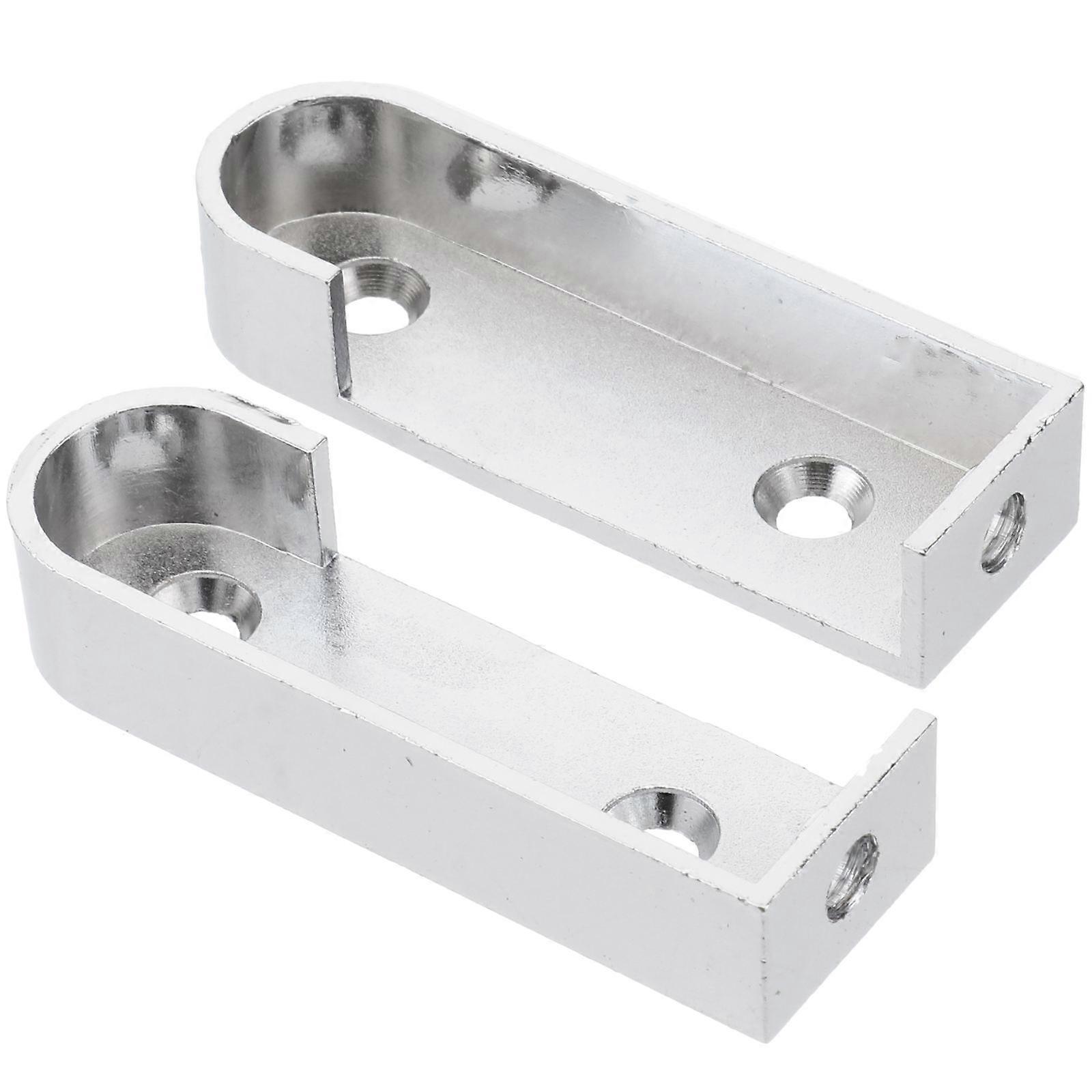 Pole Accessories Bracket Hanging Rod Holder Home Organization Silver 2Set
