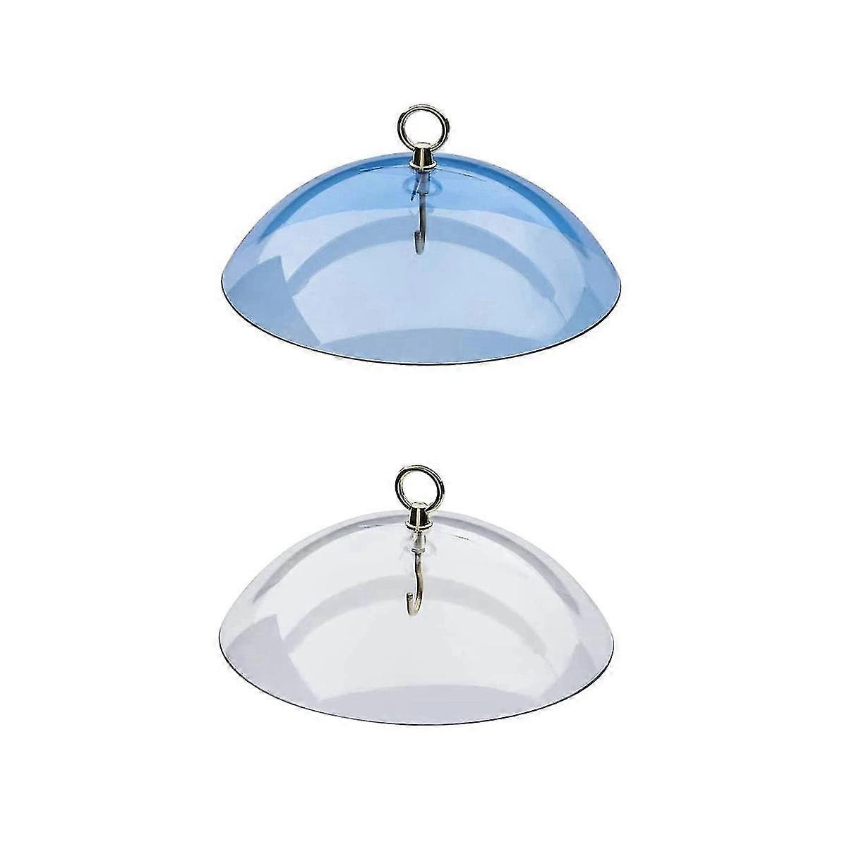 This protective dome includes a brass hanger and hook to protect small feeders from adverse weather such as rain and snow.This dome measures 26x26x8cm with the hanging hook. Squirrel guards can be used with hanging or pole mounted birdfeeders. It can be installed on the pole of the station or directly used on the hanging . The surface avoids the squirrel from climbing it to protect the from being patronized by the squirrel. In addition, it is hung on the to protect seeds and birds from adverse weather conditions. Hang this dome over a bird, oriole, tube, or any other small feeder to keep your feeder cool and dry with hook for hanging.Made to withstand harsh weather conditions, the acrylic construction of this weatherguard will not waver. Hangs over bird feeders to protect both the seeds and birds from adverse weather conditions.Unique gifts to your backyard.The 10.5 inch diameter covers plenty of space around the feeder, helping keep the seed in any small feeder dry. Color: Blue & Transparent Material: plastic+iron hook Package Contents: 2 x Bird Feeders Protective Cover Only the above package content, other products are not included. Note: Light reflection and different displays may cause the color of the item in the picture a little different from the real thing. The measurement allowed error is +/- 1-3cm.
