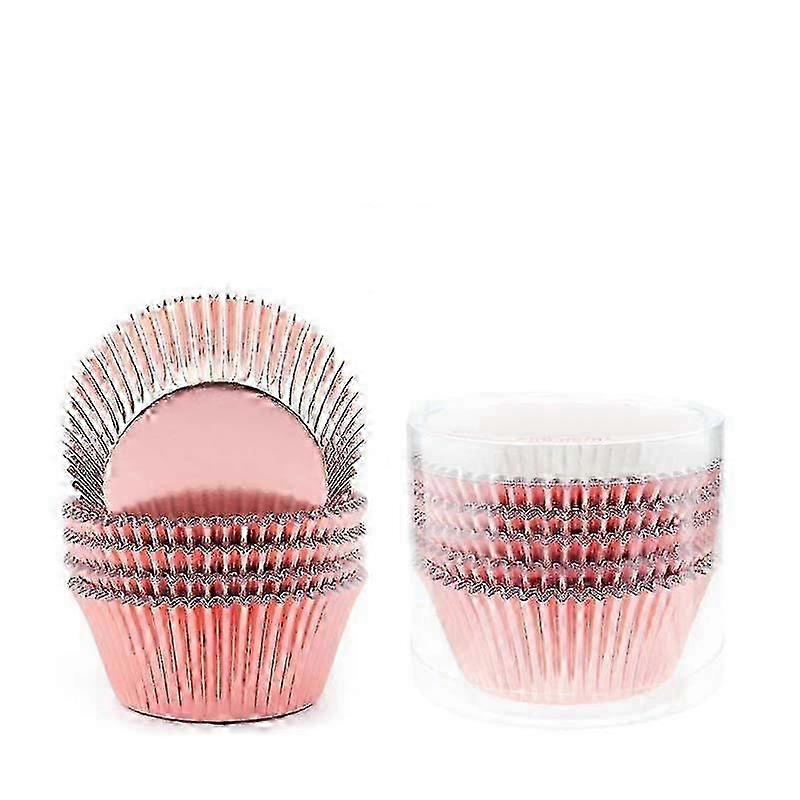 Foil Greaseproof Cake Tray Cake Baking Cup Kitchen Tools (rose gold) 100 pcs