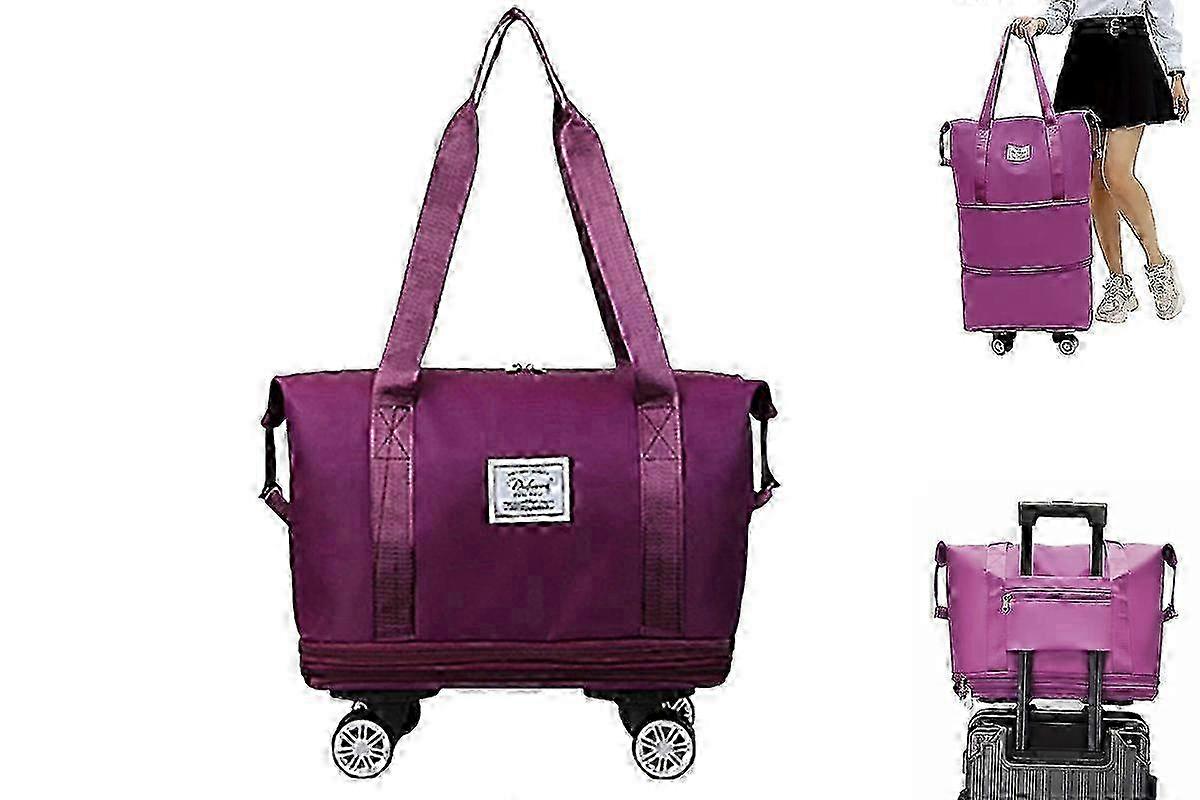 Travel Suitcases with Wheels Expandable Foldable Luggage Bag Rolling Carry -Fuchsia