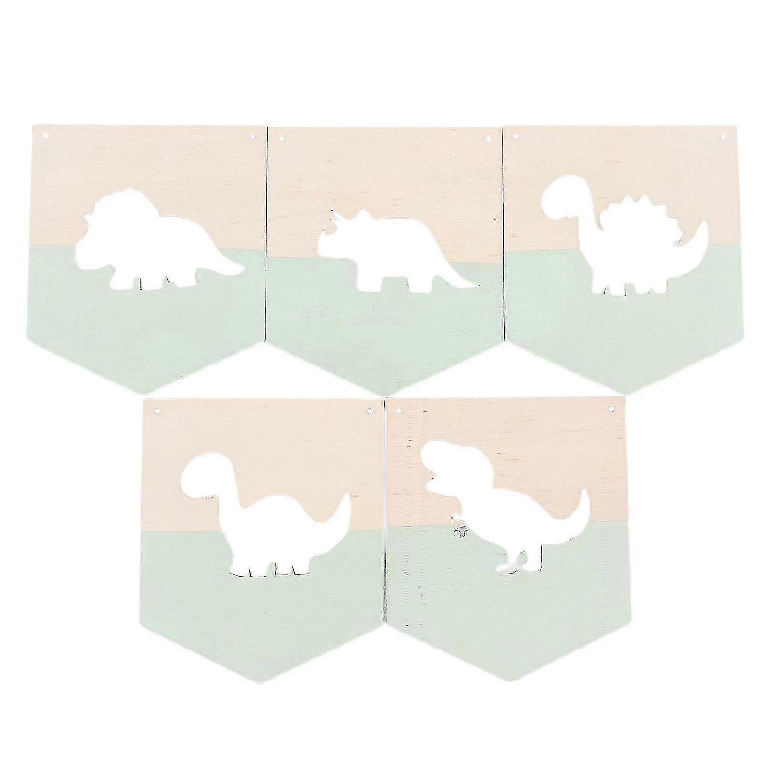 Bunting Banner Nordic Style DIY Dinosaur-shaped Hole Cute Decorative Wood Slices Holiday Party Banner Home Decoration