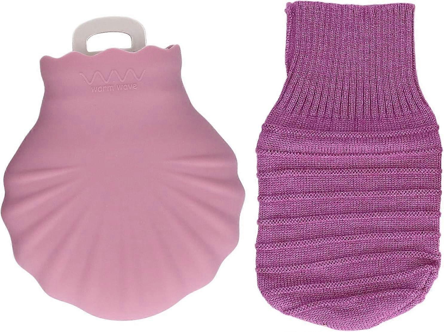 Hot Water Bag 300ml Cute Cartoon Shell Shape Explosion Proof Leakproof Flexible Comfortable Warm Water Bottle with Knitted Cover for Pain Relief Purpl