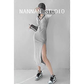 ホットガールYujieセクシーな痩身巾着フード付きドレス女性の春スリムフィットミディアムレングスタイトウエストスプリットヒップドレス