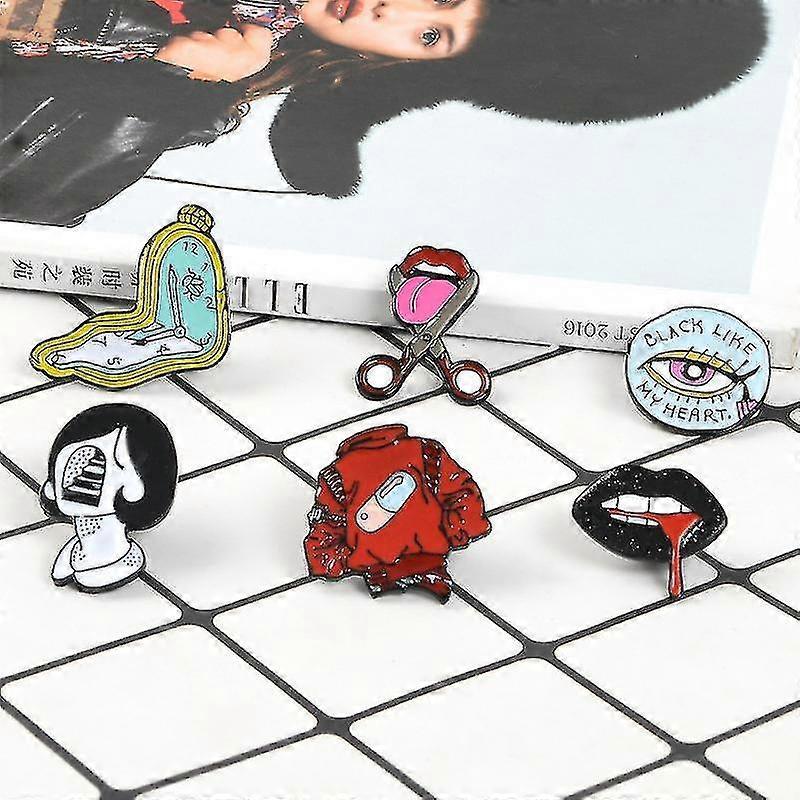 Horror Themed Dark Brooch - Stylish Enamel Pins, Black Art Sets For Jacket, Backpack, Hat and Pants Accessories (7 Packs)
