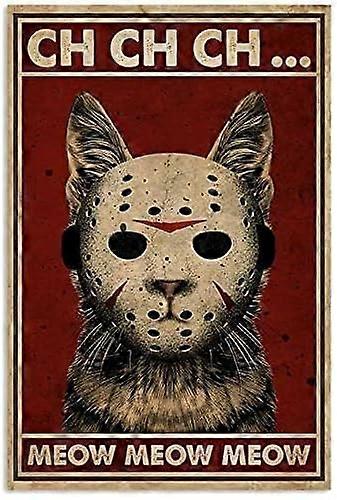 Horror Jason Cat Meow Metal Poster Wall Decor For Him Country Home Decor Vintage Tin Sign 8x12 Inch Red 8 x 12 Inch
