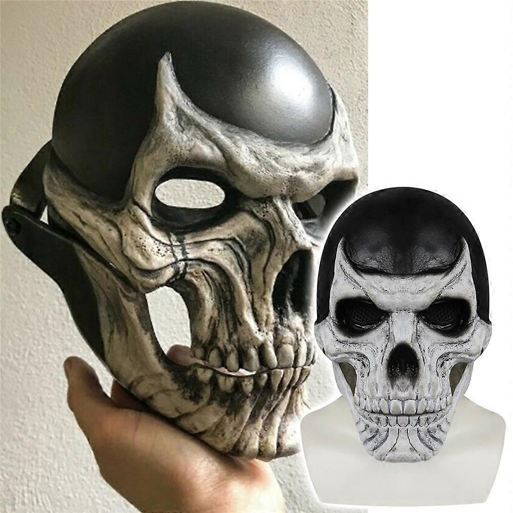 Horror Skull Face Mask With Moving Jaw Headgear Halloween Carnival Full Head Mask Scary Cosplay Head Cover Party Props