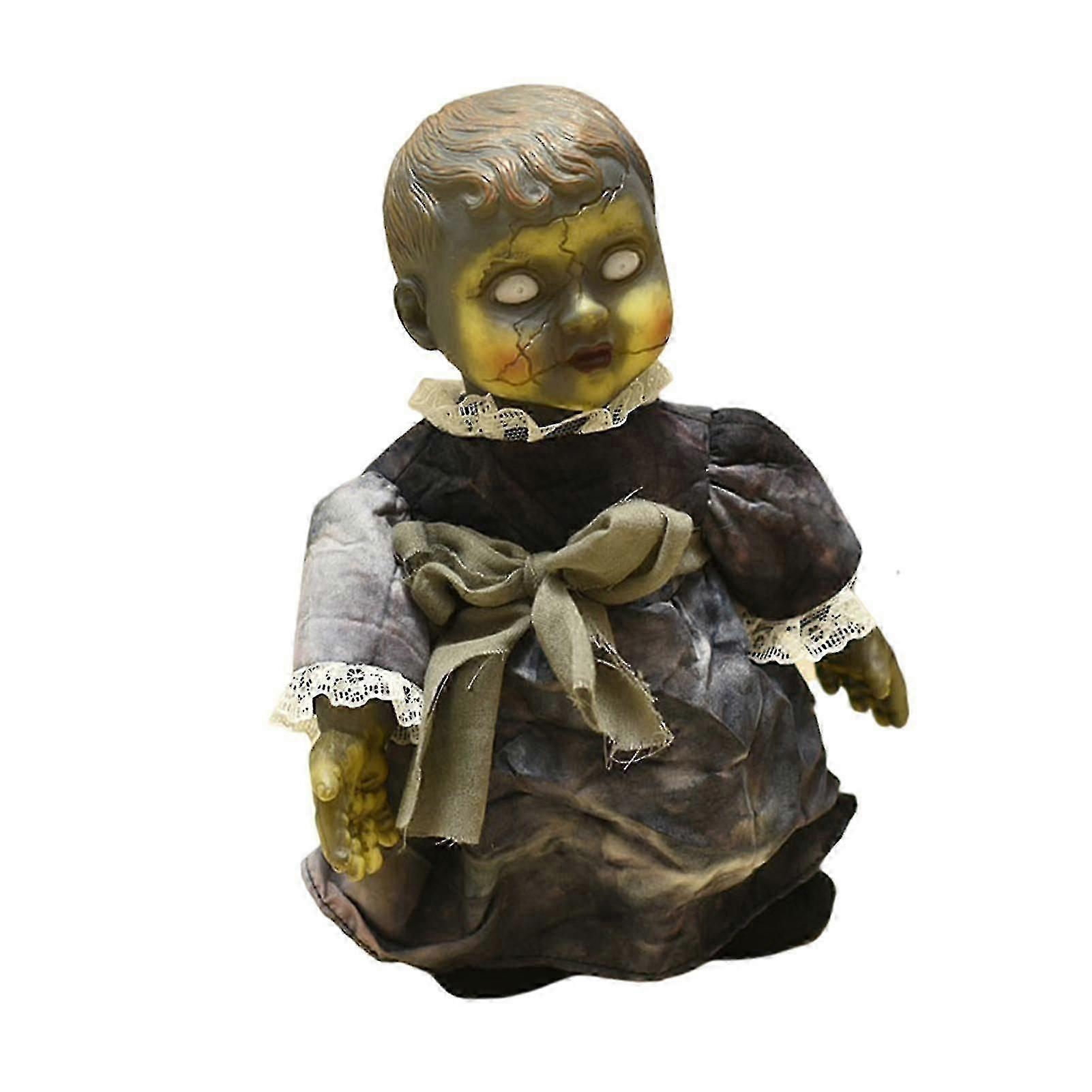 Creepy Walking Doll with Glowing Eyes & Halloween Sound Effects for Horror Decorations