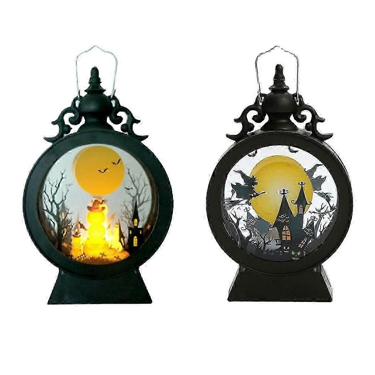 Portable Halloween lights: Use these LED lights to enhance the Halloween atmosphere. Very suitable for hanging in , classrooms, trees, fireplaces, gardens, indoors and outdoors. Eye-catching design: Eye-catching include weird pumpkins, castles and. Children will like these unique decorations, making them perfect decorations for children's rooms or playrooms. These lanterns are and long-term enjoyment and fun. These lanterns can be easily combined with other Halloween-themed decorations to create a cohesive holiday atmosphere. Experience the excitement of Halloween with these portable Halloween lanterns. Hang them up, turn on the LED lights, and let the ghostly atmosphere fill your home, porch, bar or meeting place. Create unforgettable memories and an unforgettable Halloween celebration. Colour:Black Material:Plastic + Glass Specification:B:Witch:Pumpkin Package Contents: 1 x Witch Lantern 1 x Pumpkin Lantern Only the above package content, other products are not included. Note: Light reflection and different displays may cause the color of the item in the picture a little different from the real thing. The measurement allowed error is +/- 1-3cm.