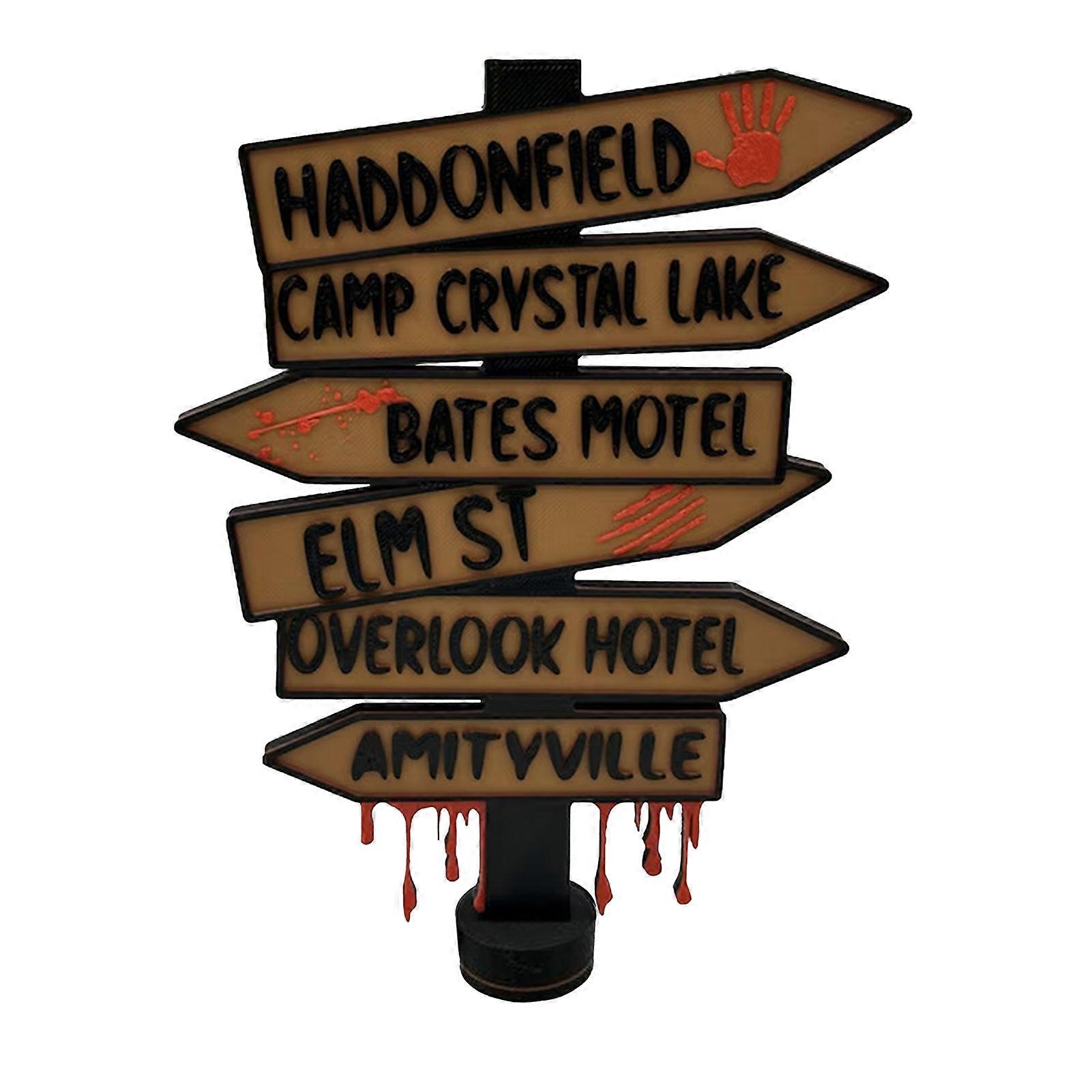 Horror Movie Destination Road Sign Decoration Halloween Spooky Mini Street Guide Board Desktop Ornament Festival Party Supplies