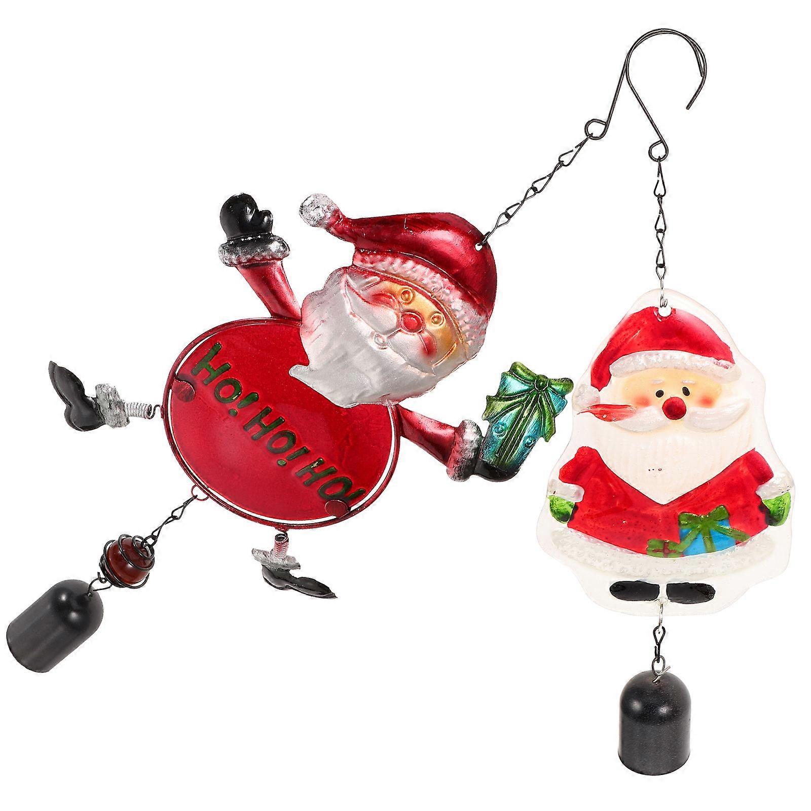 Holiday Wind Chimes Vintage Christmas Colored Wind Chime Iron and Glass Hanging Pendants For Garden 44*16cm Housewarming 2Pcs