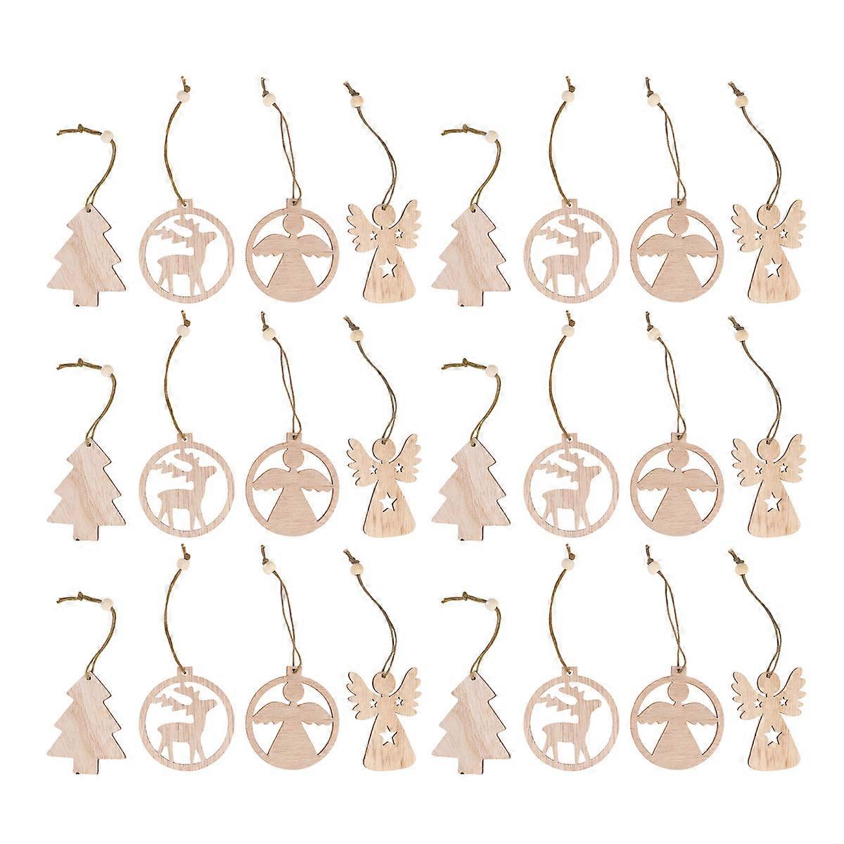 Holiday Craft Wooden Christmas Pendants Simple Styling Tree Shaped Ornaments Angels Decorative Diy Handcrafts M 24Pcs