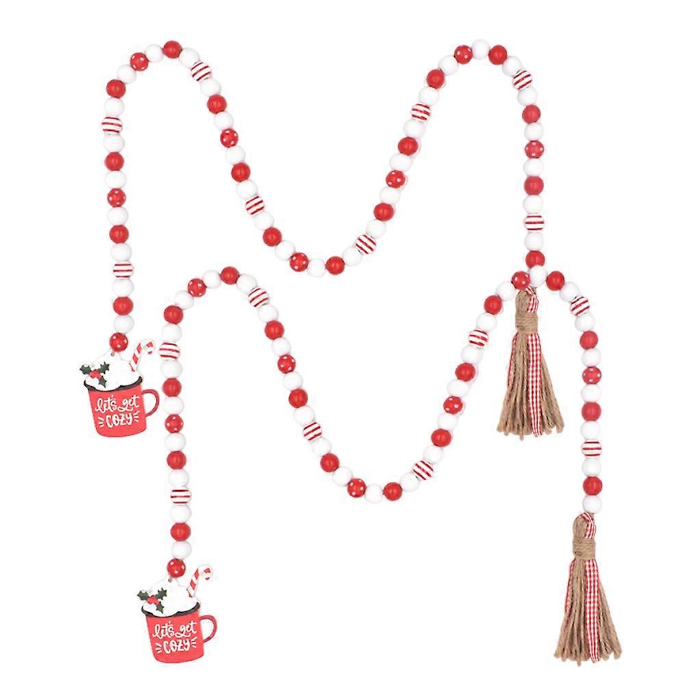 Creative Design Wooden Bead Garland With Tassels Festive Decor For Holiday Season 2Pcs