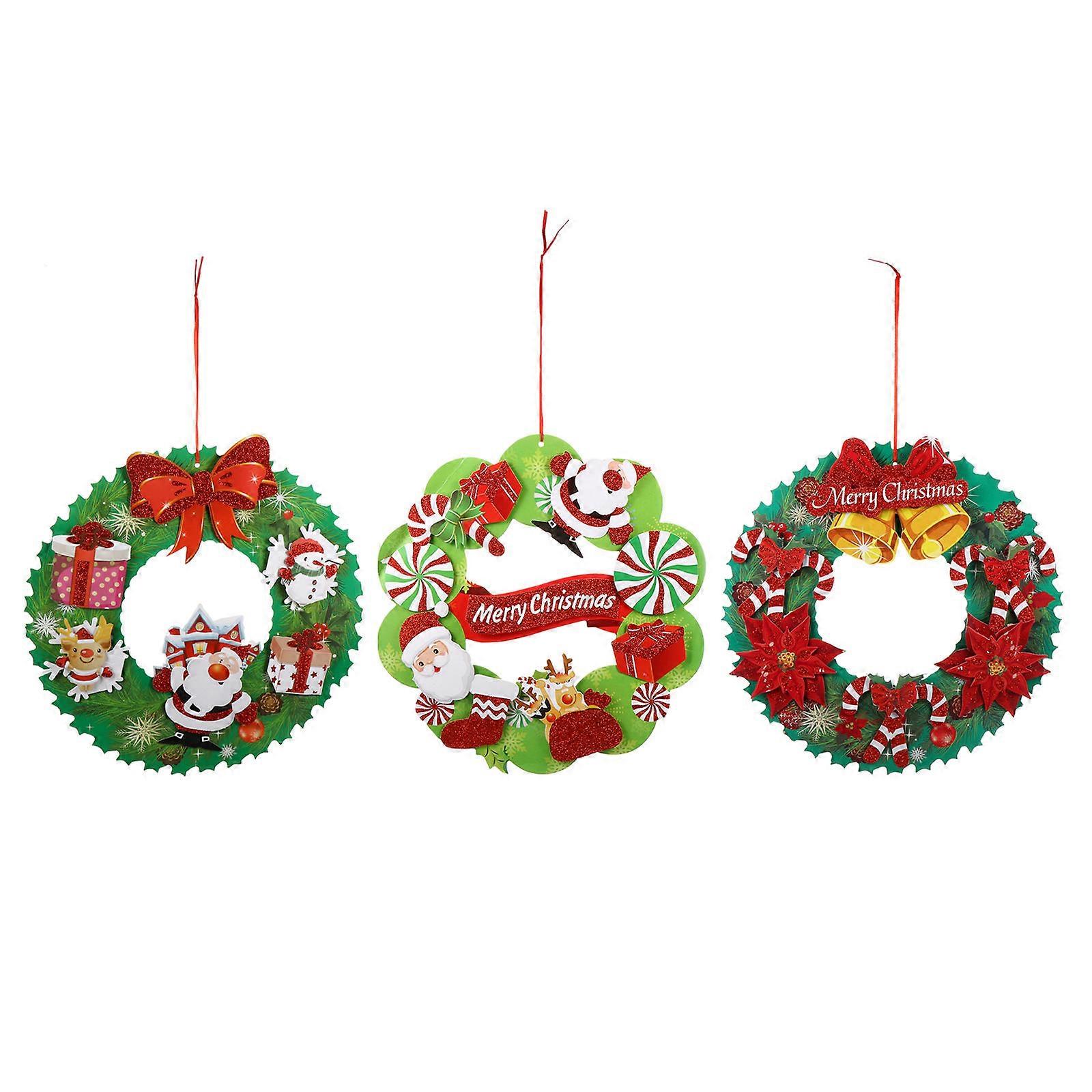 Holiday Wreath Christmas Celebration Party Atmosphere Circular Green Cardboard Paper With Glitter 3Pcs