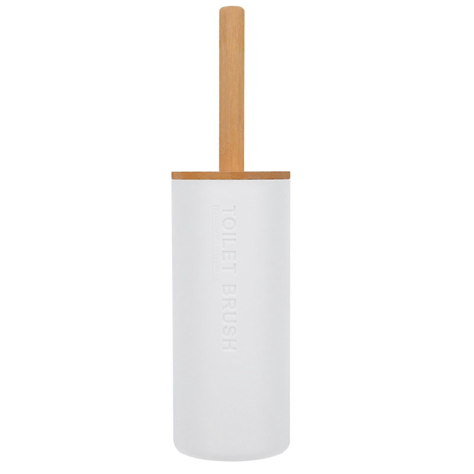 Long Handle Bathroom Brush with Holder Compact Toilet Cleaning Brush, Bamboo Material for Space Saving and Thorough Cleaning