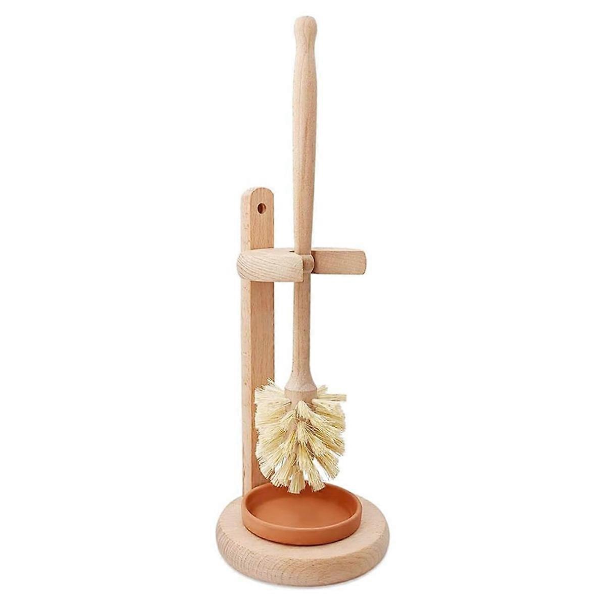 Toilet Bowl Cleaner Brush with Holder, 14 Inch Extra Long German Beechwood Handle, Ceramic Drip Tray