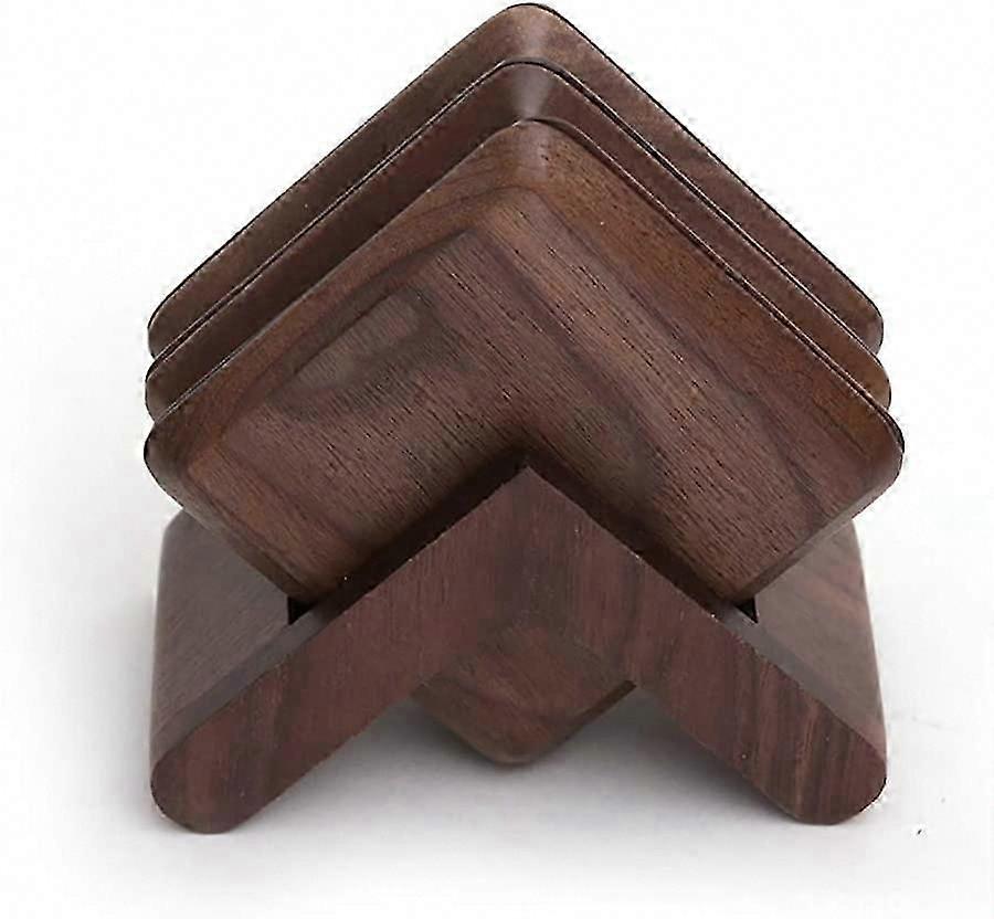 Natural Wooden Coasters with Holder, Set of 6,Rectangle,9cm,for Drinks, Coffee, Tea Cup