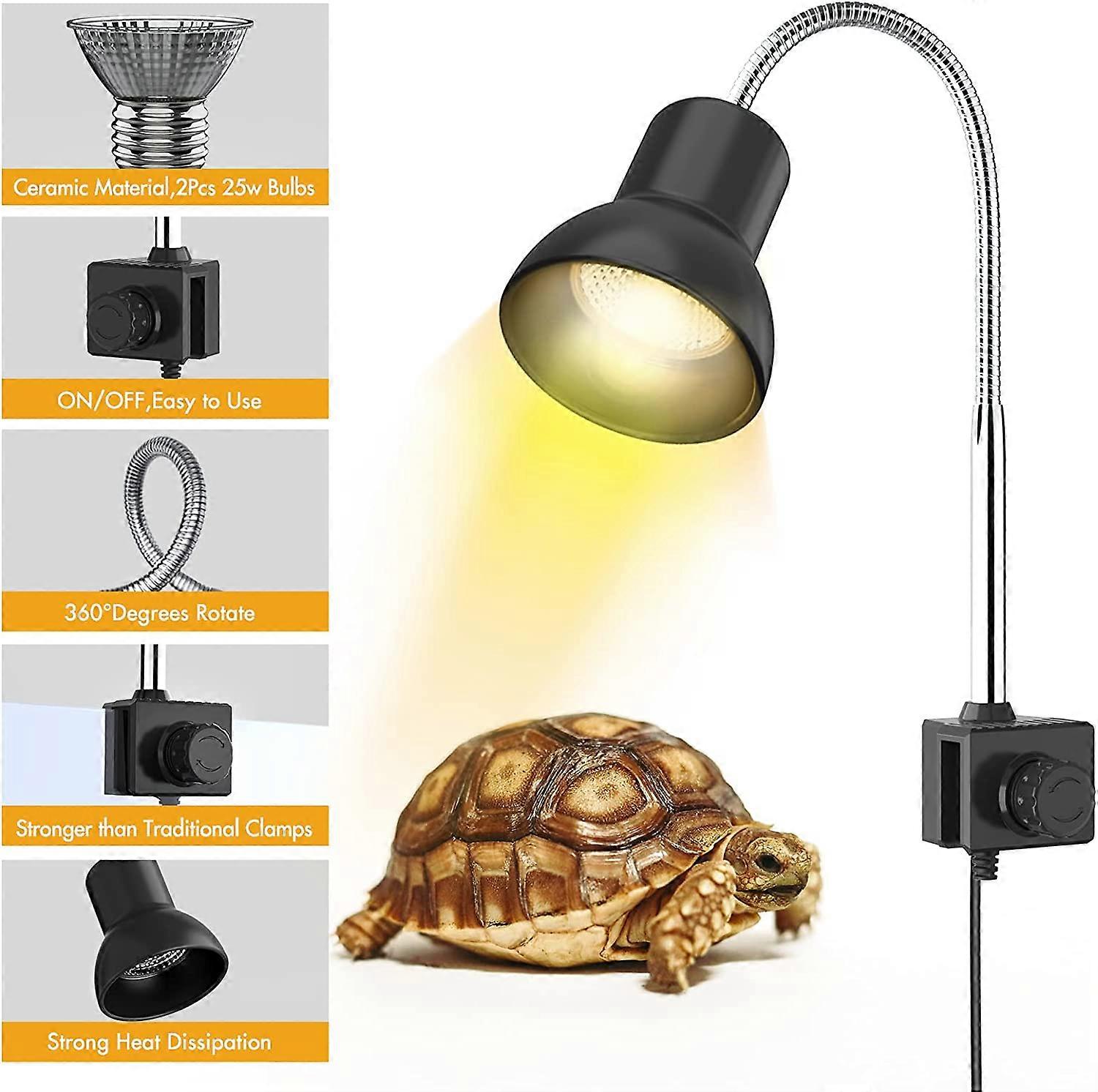 25W Heat Lamp with Holder UVA UVB Basking Lamp with 360° Rotatable Clip & Power Adapter for Reptiles, Lizard, Turtle Snak Aquarium