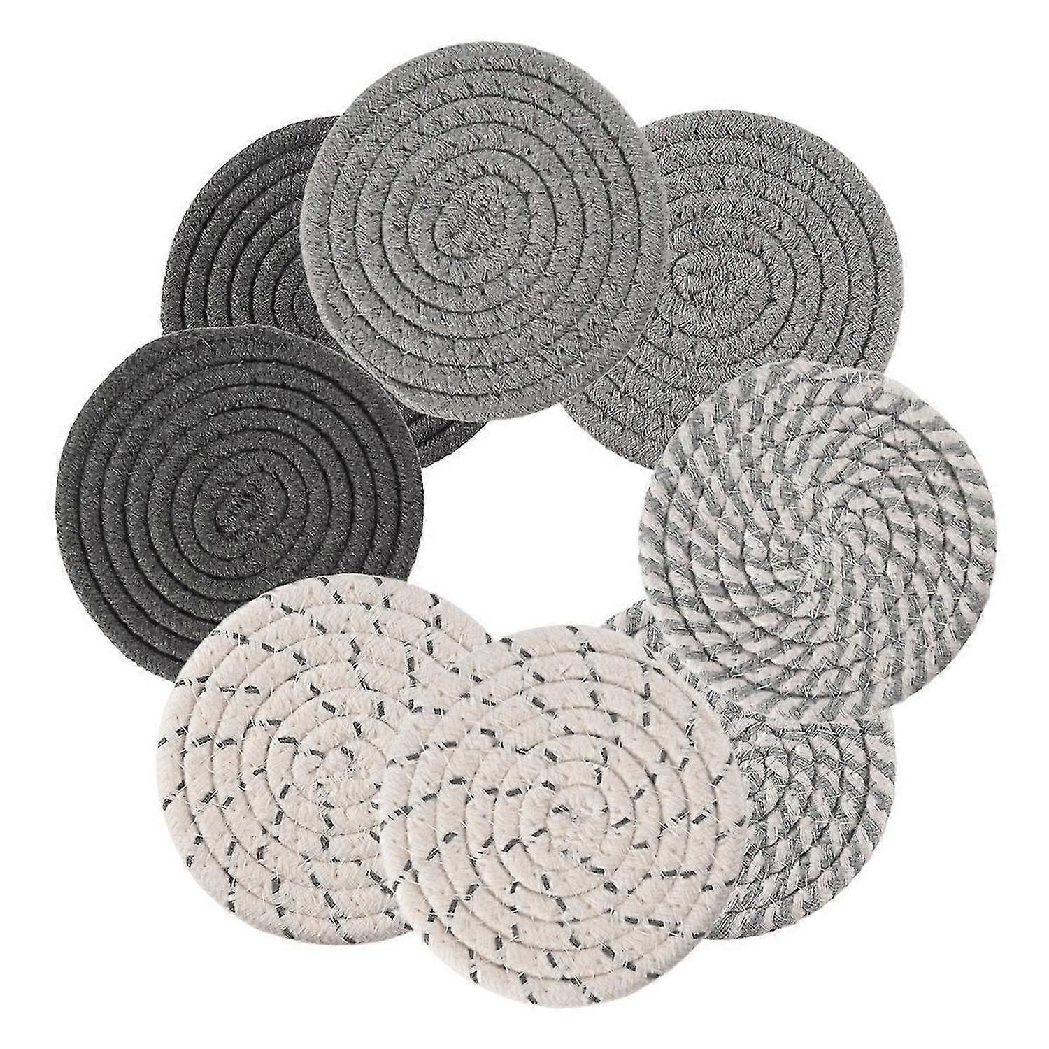 8 Pcs Drink Coasters with Holder, 4 Colors Absorbent Coasters for Drinks, Minimalist Cotton Woven Co