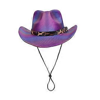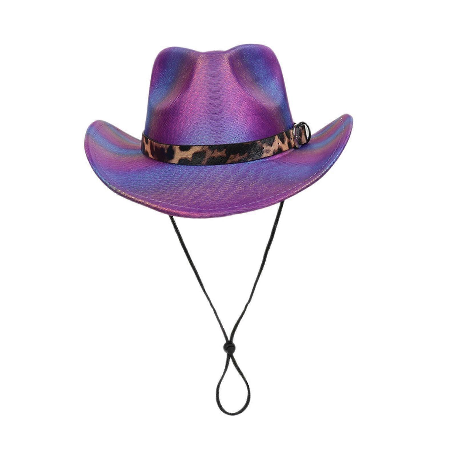 Holographic Western Cowboy Hat Sunhat for Music Festival Beach Party Outdoor Purple
