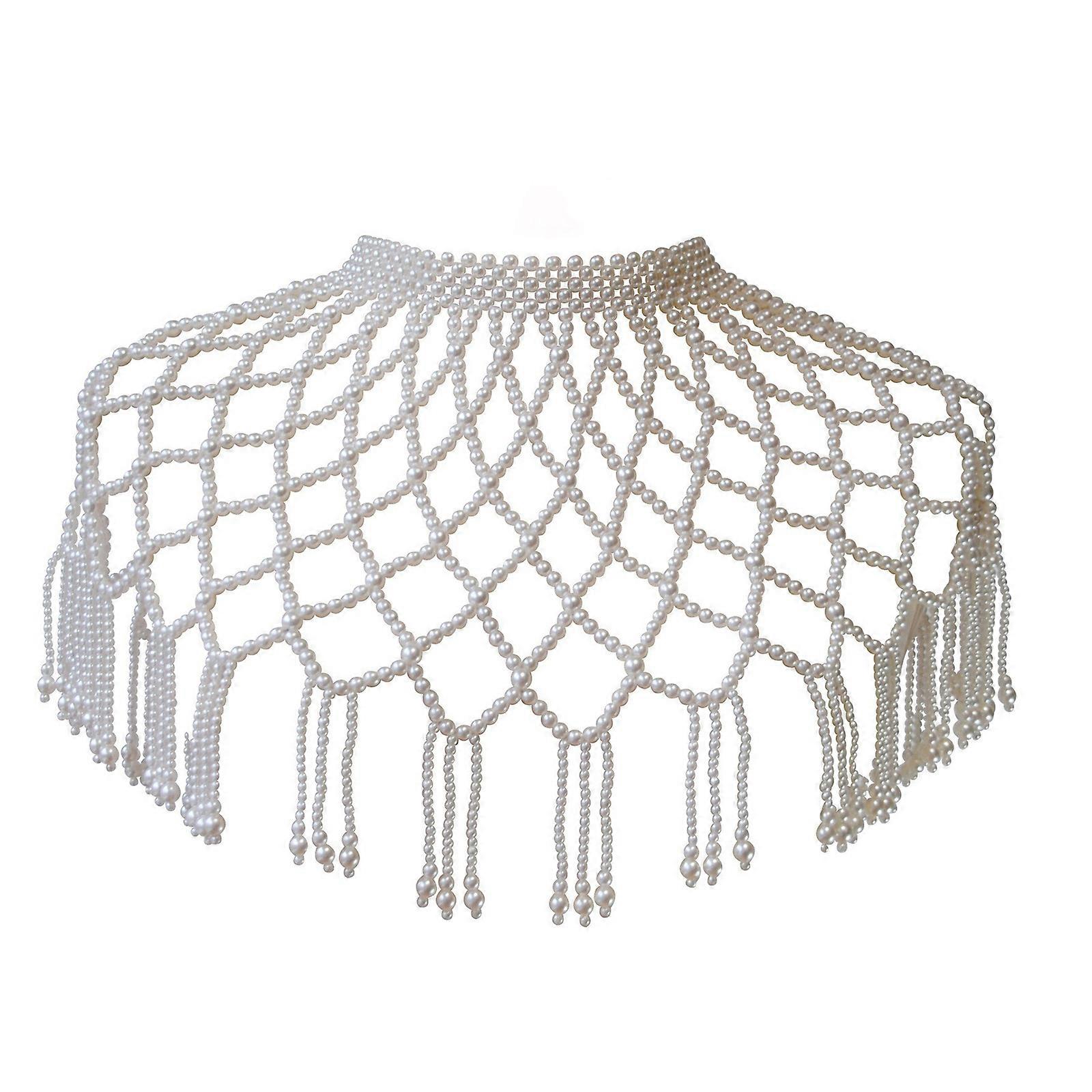 White Color Pearl Shawl Necklace Shinning Body Chain with Extension Chain Delicate Pearl Body Jewelry for Woman Girl White