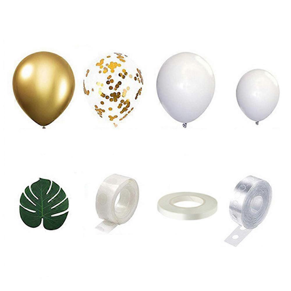 White Gold Balloon Arch Garland Kit for Party Decor with Confetti Balloons and Artificial Palm Leaves