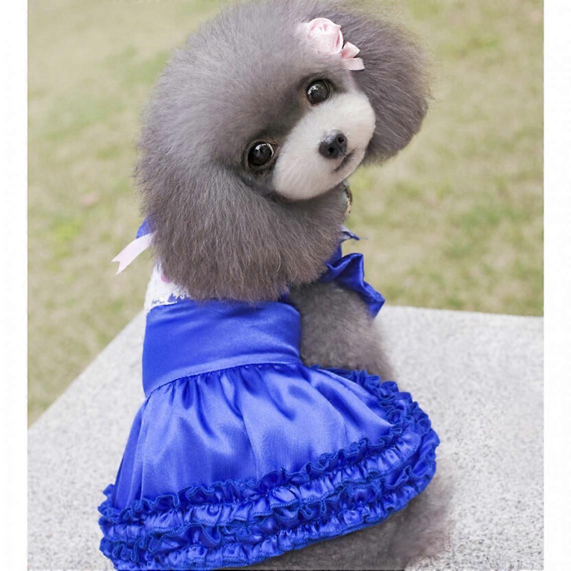 White Satin Bowknot Dog Cat Clothes Puppy Lace Shirt S Blue