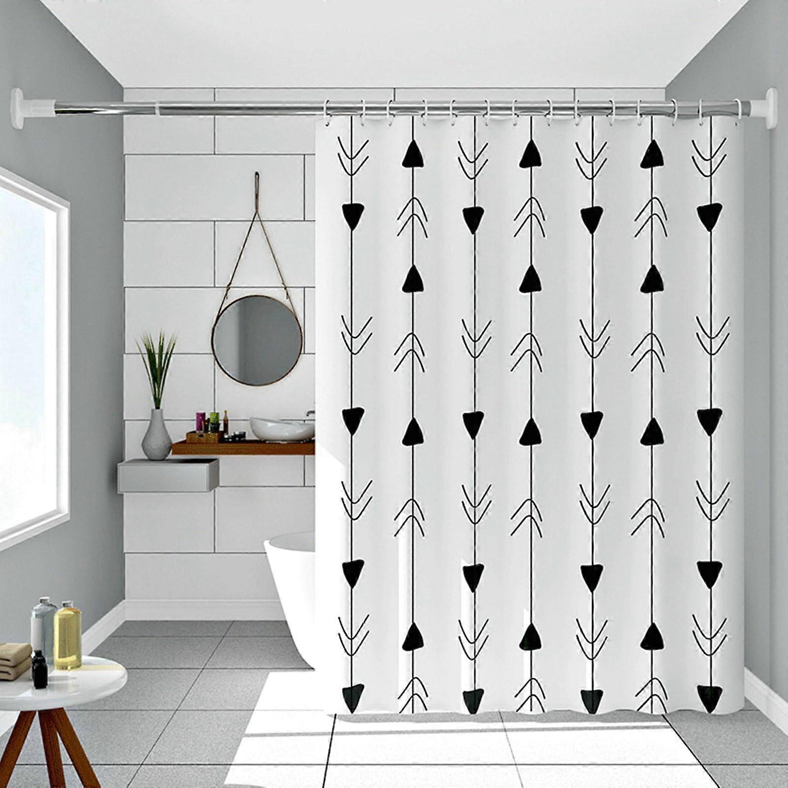 White Black 240 x 200 cm Bathroom Shower Curtain with Metal Eyelets Made of PEVA Geometric Arrow Pattern, Black/White