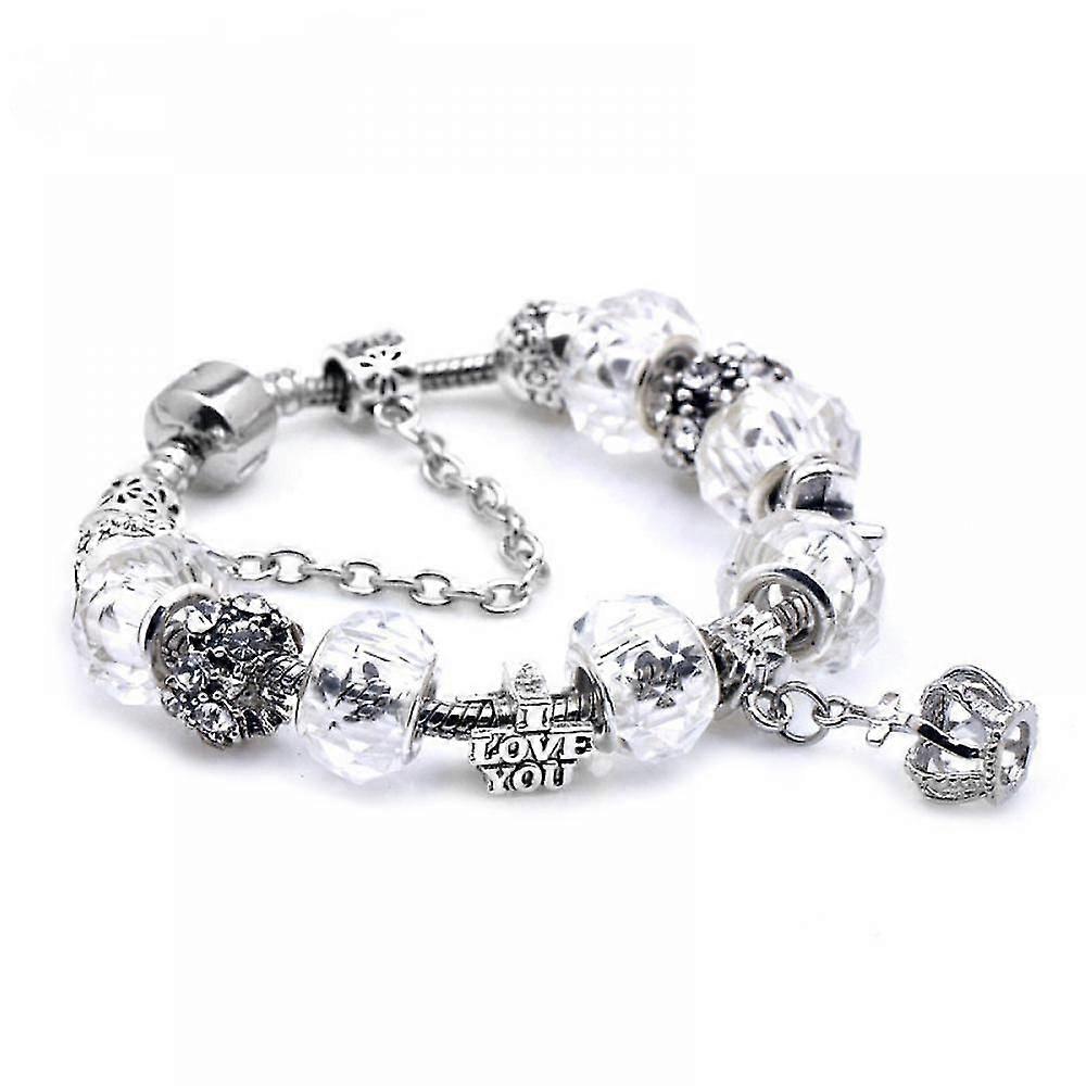 White Bracelet Women Beaded Crown Couple Crystal Bracelet Best Gift For Her(size:18cm)