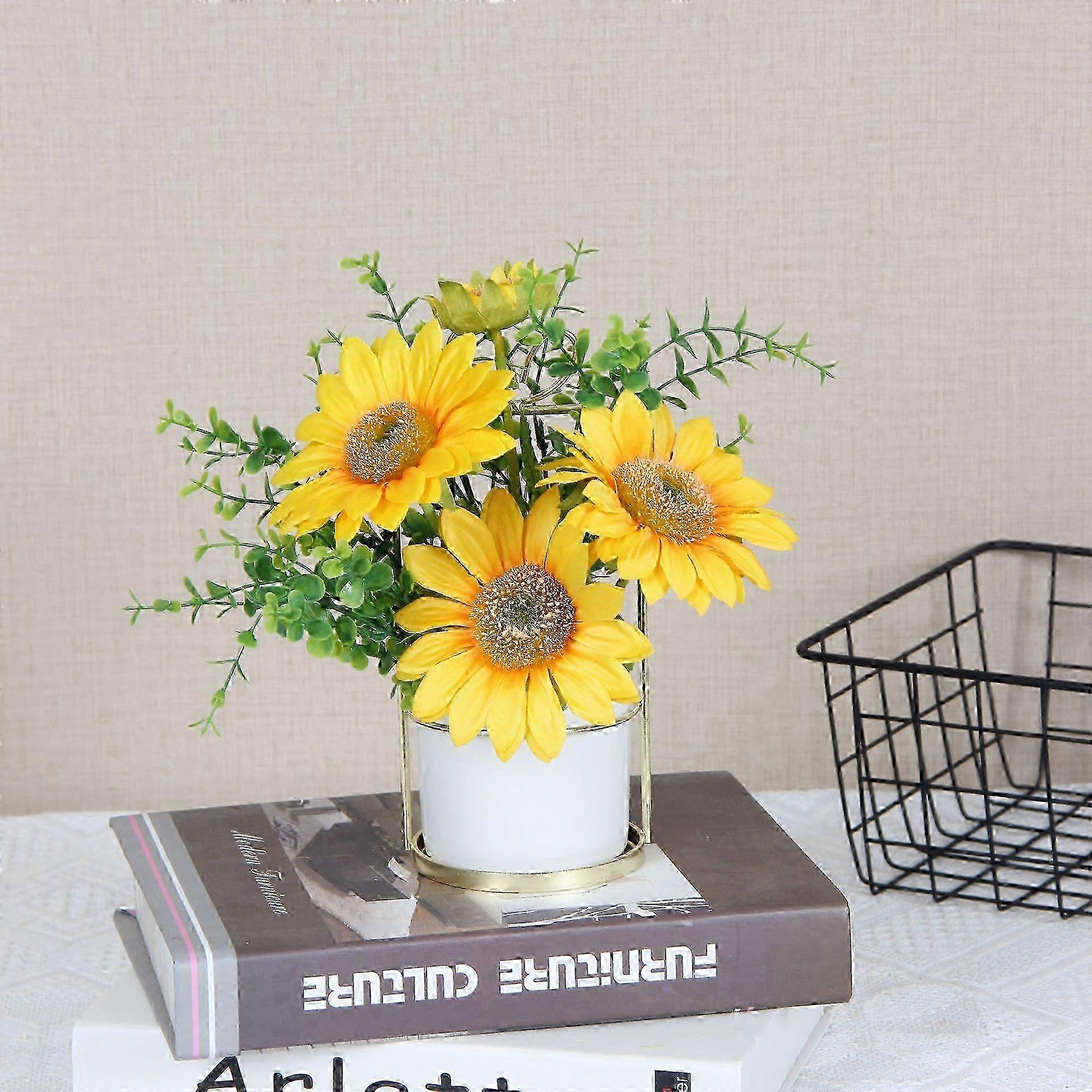 Decorative Sunflower Pot with White Metal Framed Flower Basket