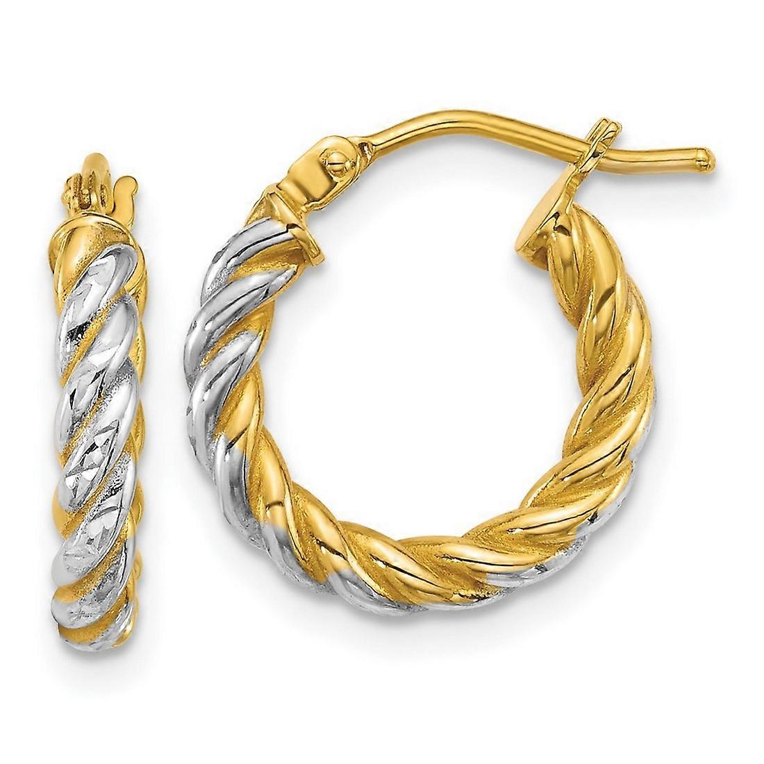 14k With White Rhodium Polished Sparkle Cut Twisted 2.75mm Hoop Earrings 15x15mm Wide 2.75mm Thick-Hoop Earring for Wome