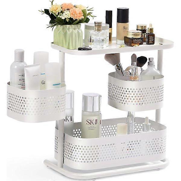 (White) 1 Pcs Bathroom Counter Organizer, 3-Tier Rotating Vanity Tray Organizer for Bathroom Counters