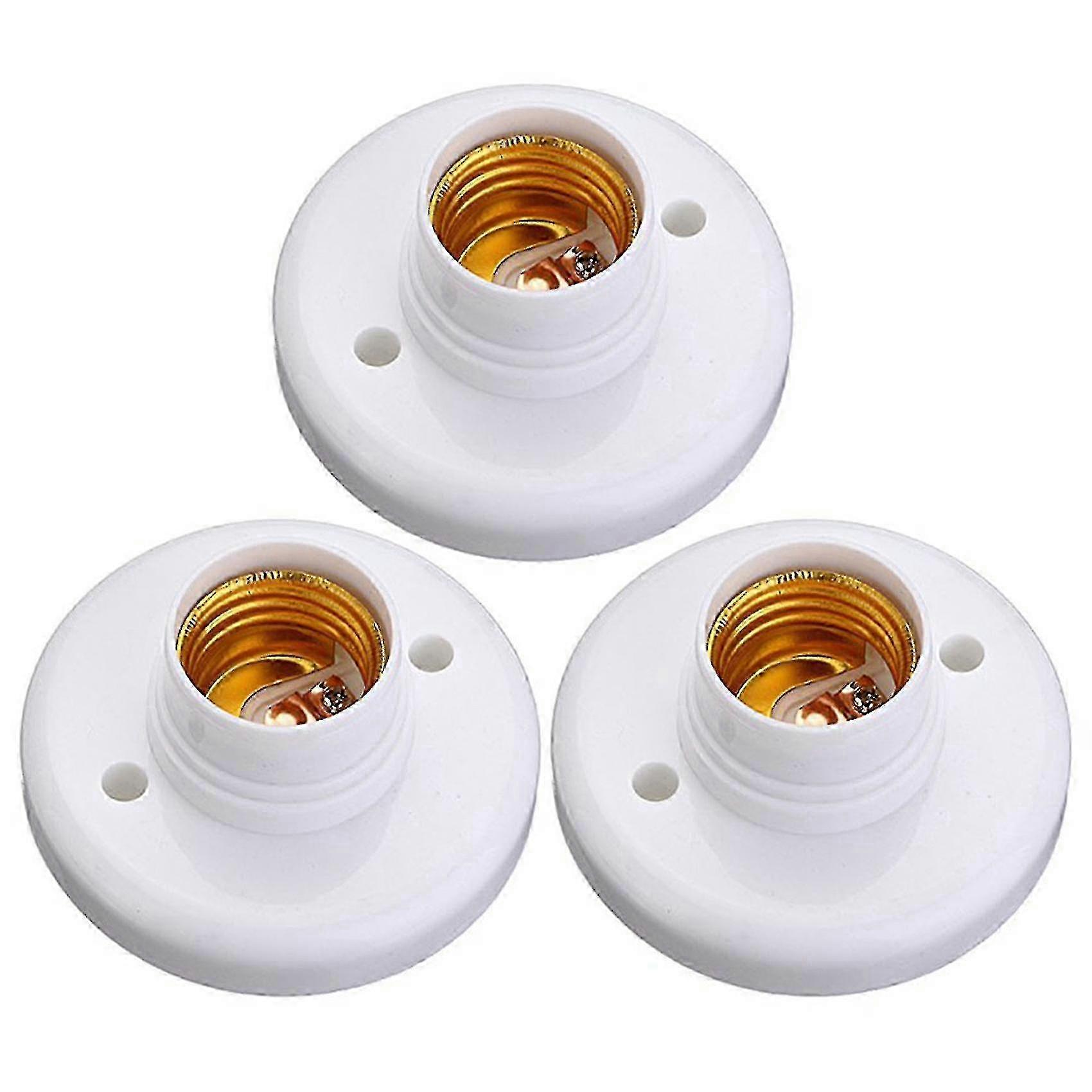 White 3x E27 Round Plastic Base Screw Light Bulb Lamp Socket Holder