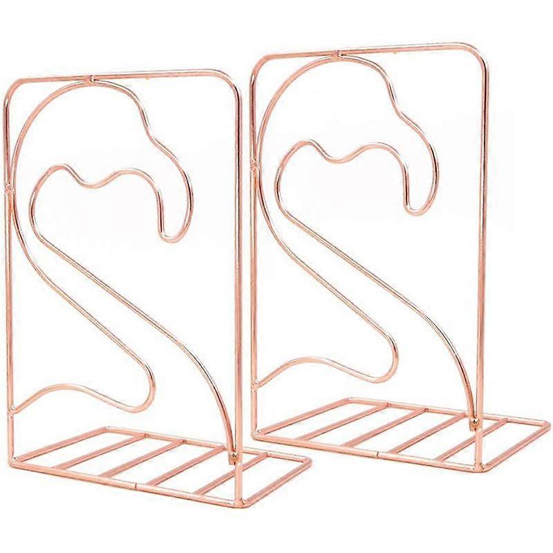 Pair of Flamingo Hollow Rectangular Non-Slip Metal Bookends for Home Office Study Room Decorative Book Organiser (Rose Gold)