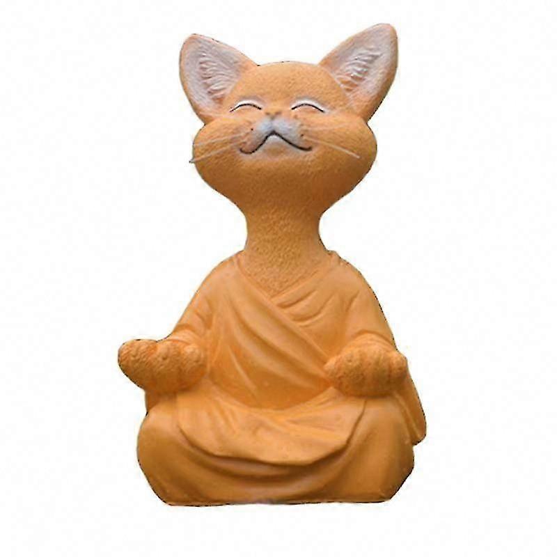 Meditation Cat Statue for Home & Office Decor - Small Resin Desktop Decoration, Gift & Toy (Orange)