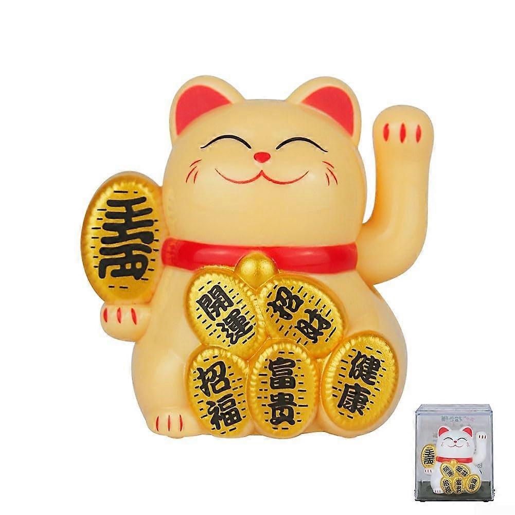 Cute Waving Cat Ornaments for Home Office Car Decoration - Solar Energy Automatic Lucky Cat in Yellow Color