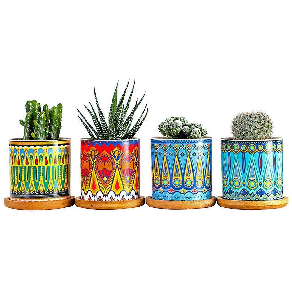 1 Set of Cylindrical Succulent Mini Ceramic Flowerpot Mandala Pattern Bonsai Pots for Home Office