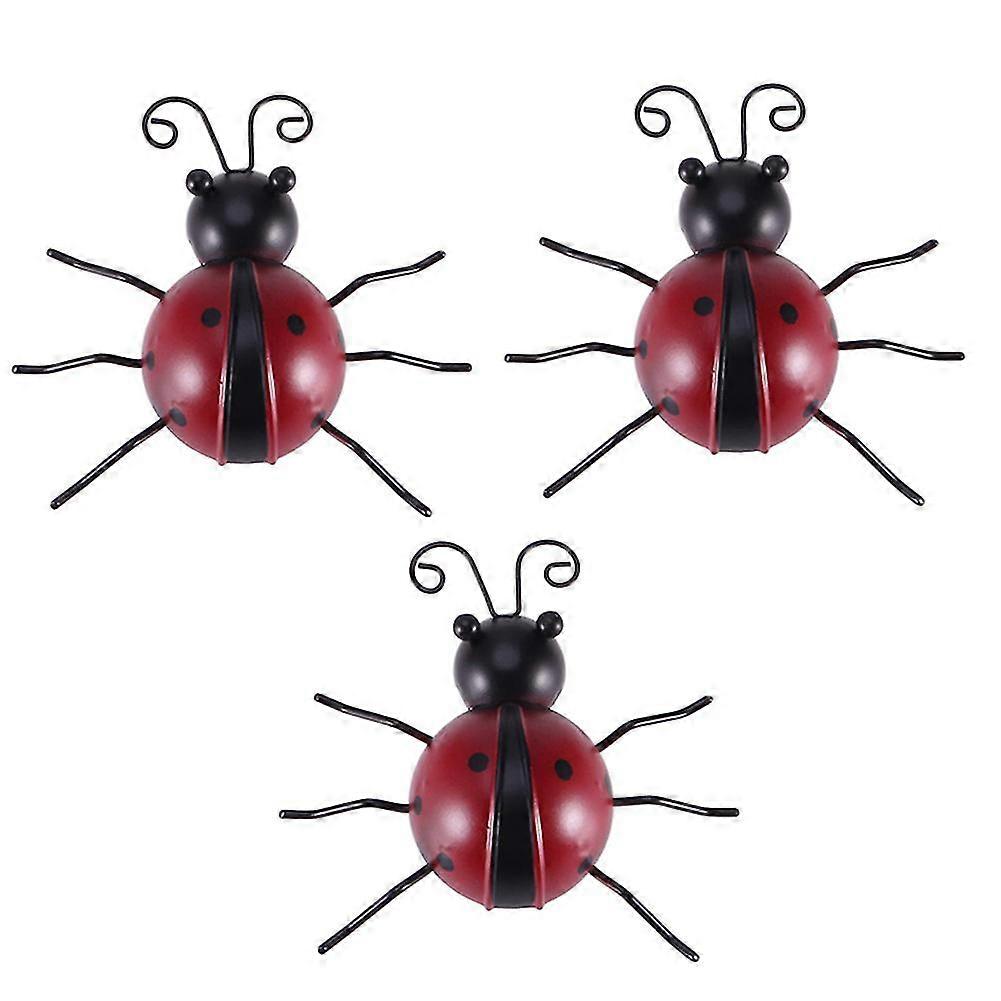 3 Pcs Iron Ladybug Metal Wall Hanging Art Decorations Ornament For Home Garden