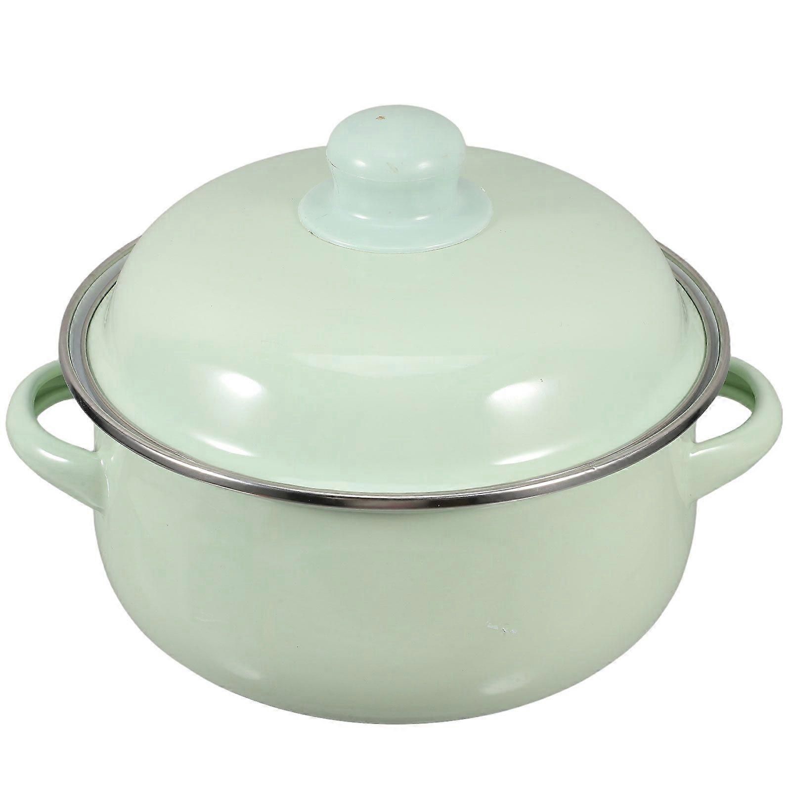 Vintage Enamel Stockpot With Lid For Home Kitchen Multifunctional Cooking Stew Pot Ideal For Soup Noodle And Milk Green Enamelware Cooking Pot With Ha