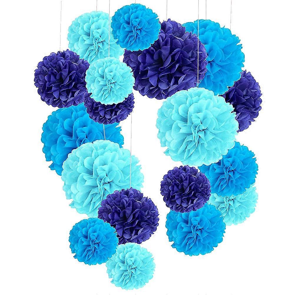 Decorative Paper Flower Balls Honeycomb Shaped Decor for Home Shop Mall 8 10 12 Inch Light Blue Sky-Blue Dark Blue Style 1 Set of 18Pcs