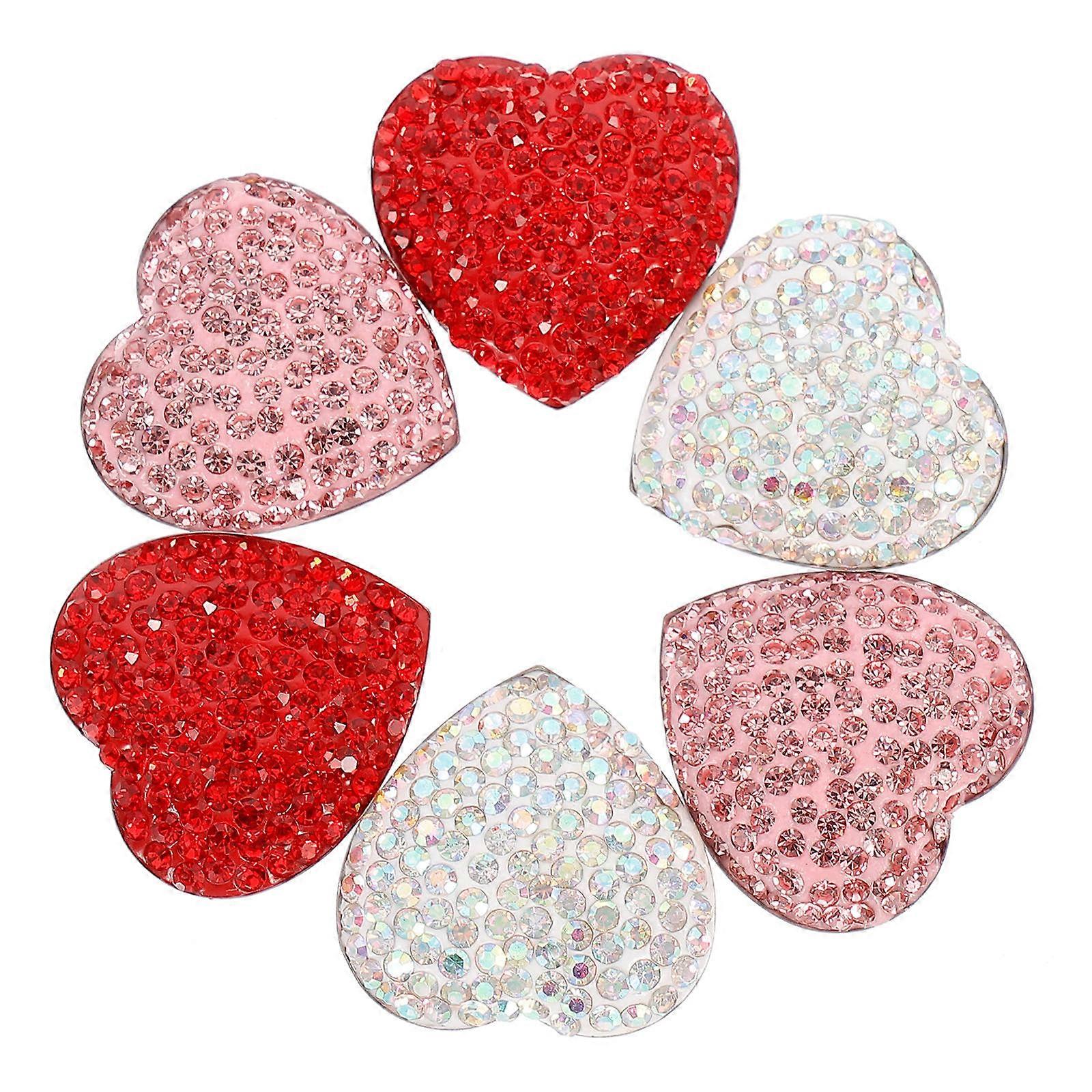 Heart-shaped Rhinestone Magnet Decal For Home Decoration 2.50X2.50X0.50CM Made Of Stainless Steel Suitable For Family 6Pcs