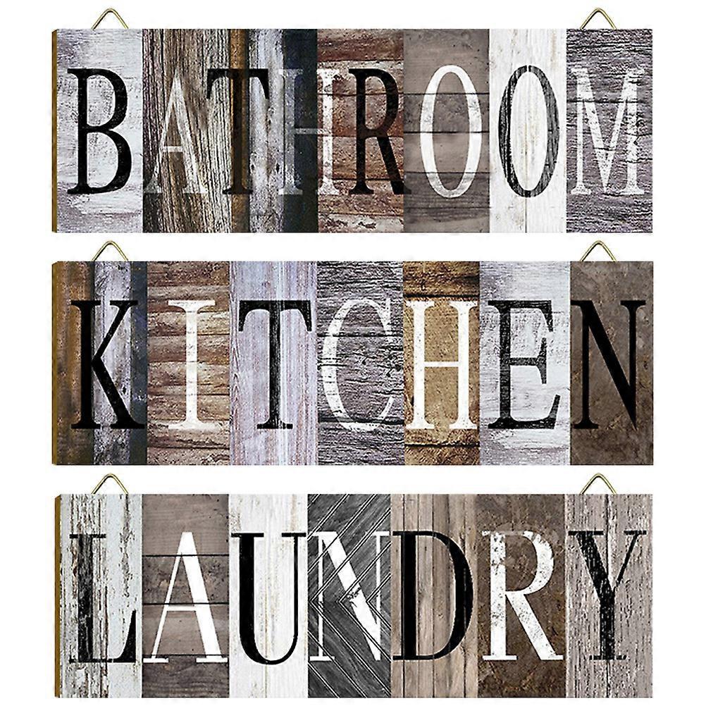 Home Bathroom Wall Decor Hanging Wall Sign Wood Material Indication Farmhouse Signs 3Pack