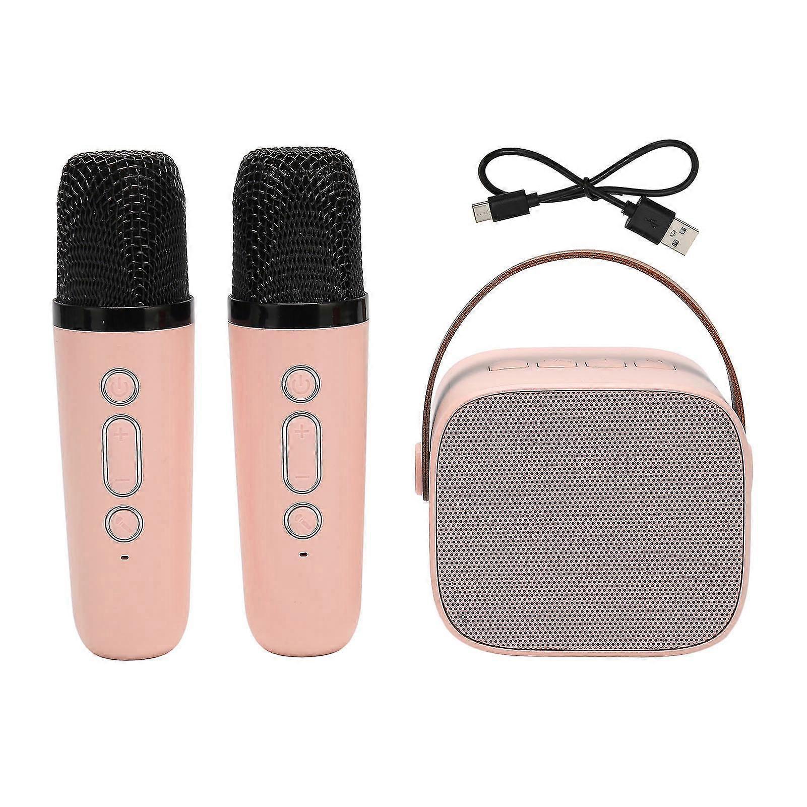 Karaoke Machine for Home Party KTV - Portable Bluetooth Speaker with 2 Wireless Microphones (Pink)
