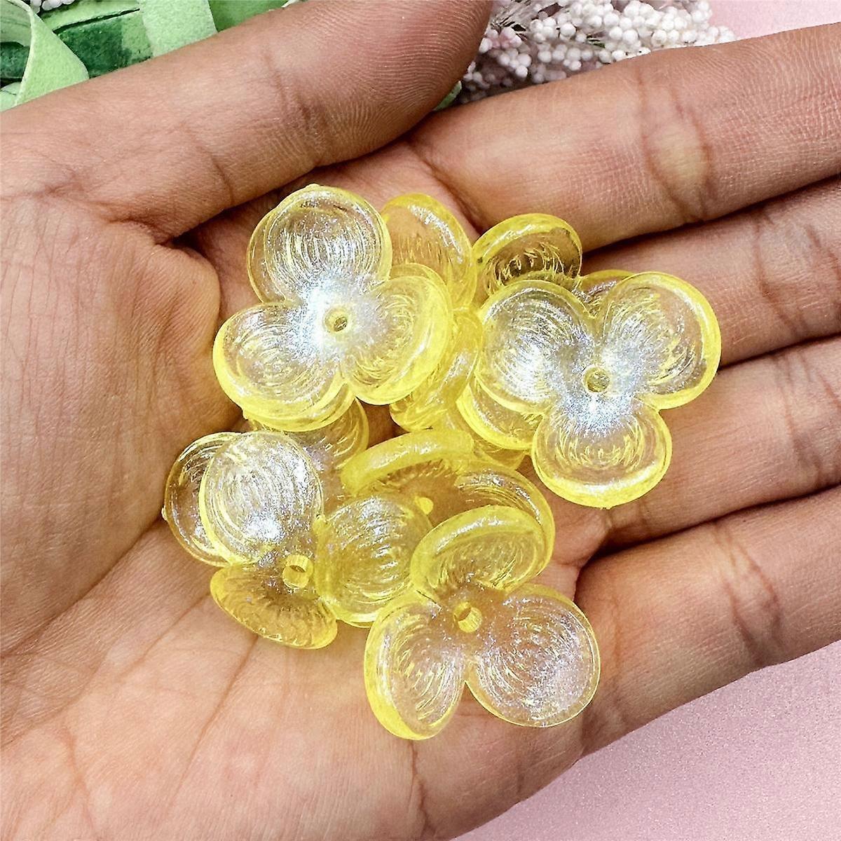 Home Party Supplies Beaded Beads 22.6mm Handmade Acrylic Three-petal Flowers Mobile Phone Chain Hollowed Out Straight Hole 10pcs