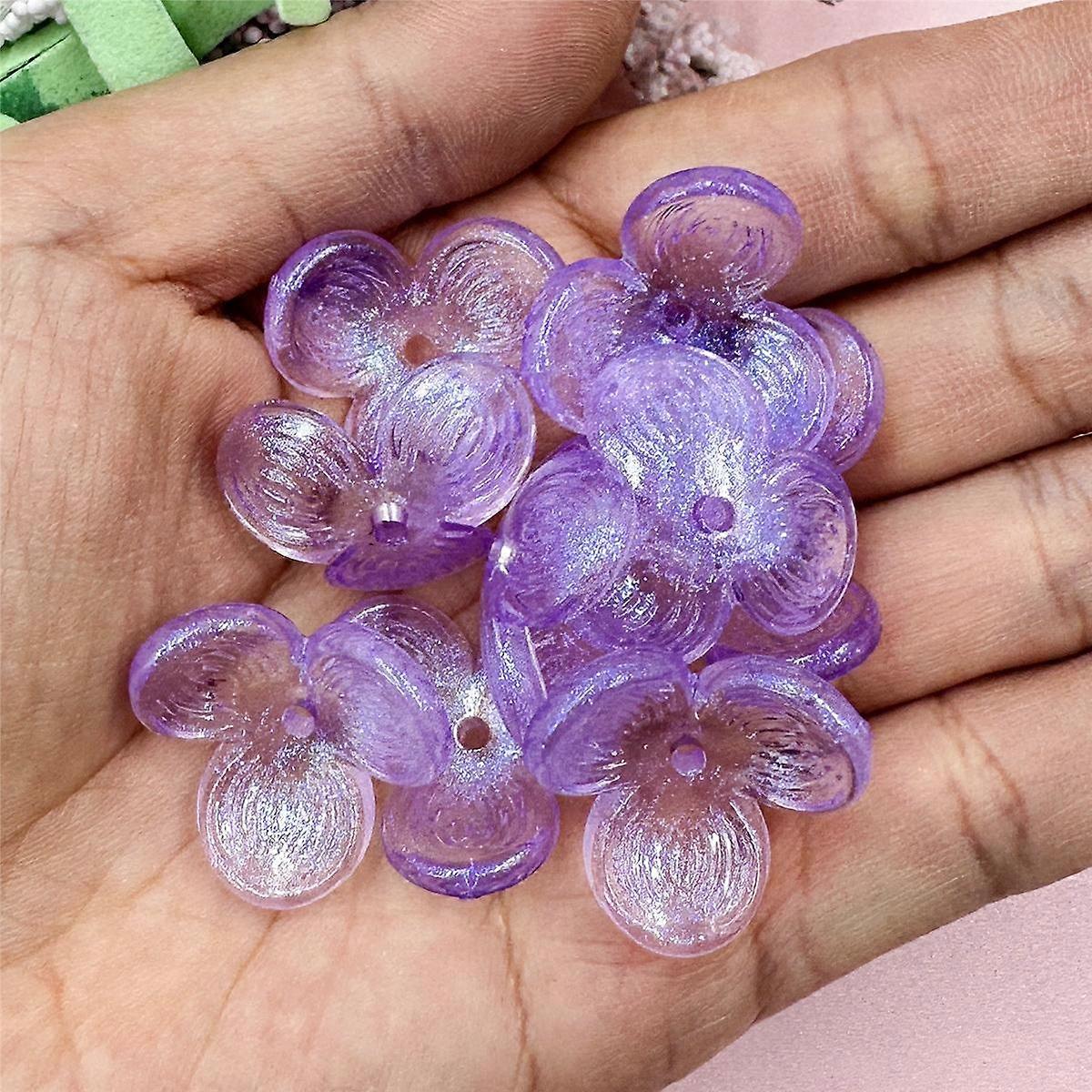 Home Party Supplies Beaded Beads 22.6mm Handmade Acrylic Three-petal Flowers Mobile Phone Chain Hollowed Out Straight Hole 10pcs