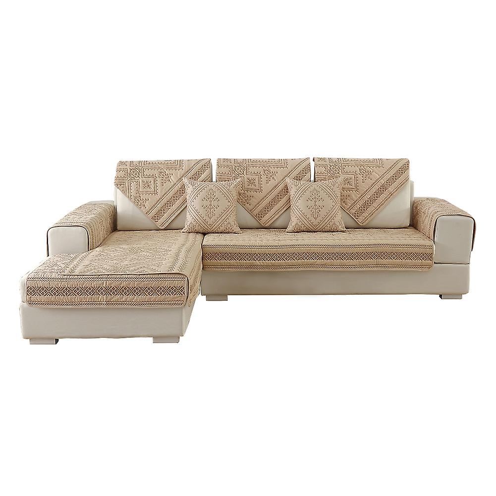 Modern Cotton Embroidered Sofa Cover Mat Protector for Home Beige (90*120cm)