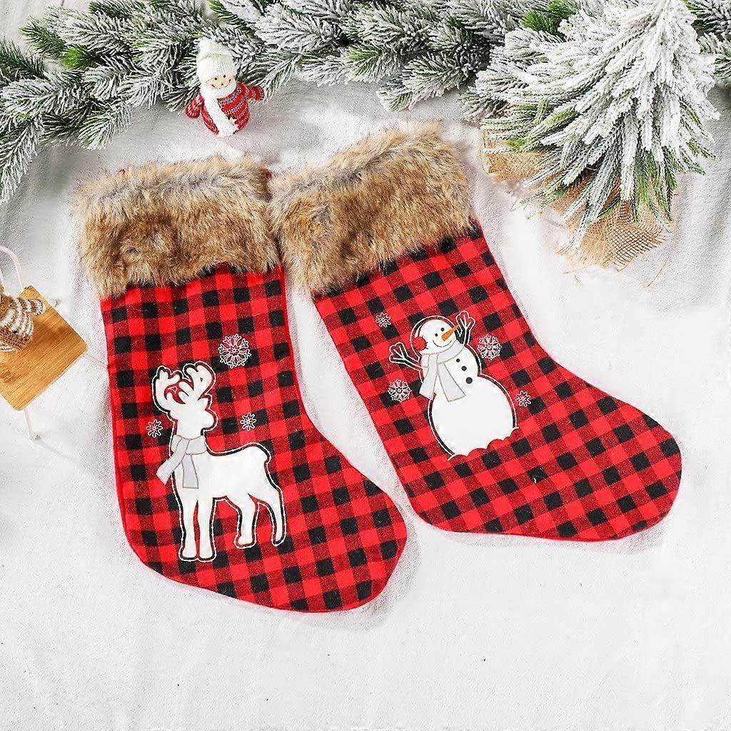 Christmas Stocking Christmas Decoration for Home Lager Candy Holder Knitted Socksred, white2Pcs