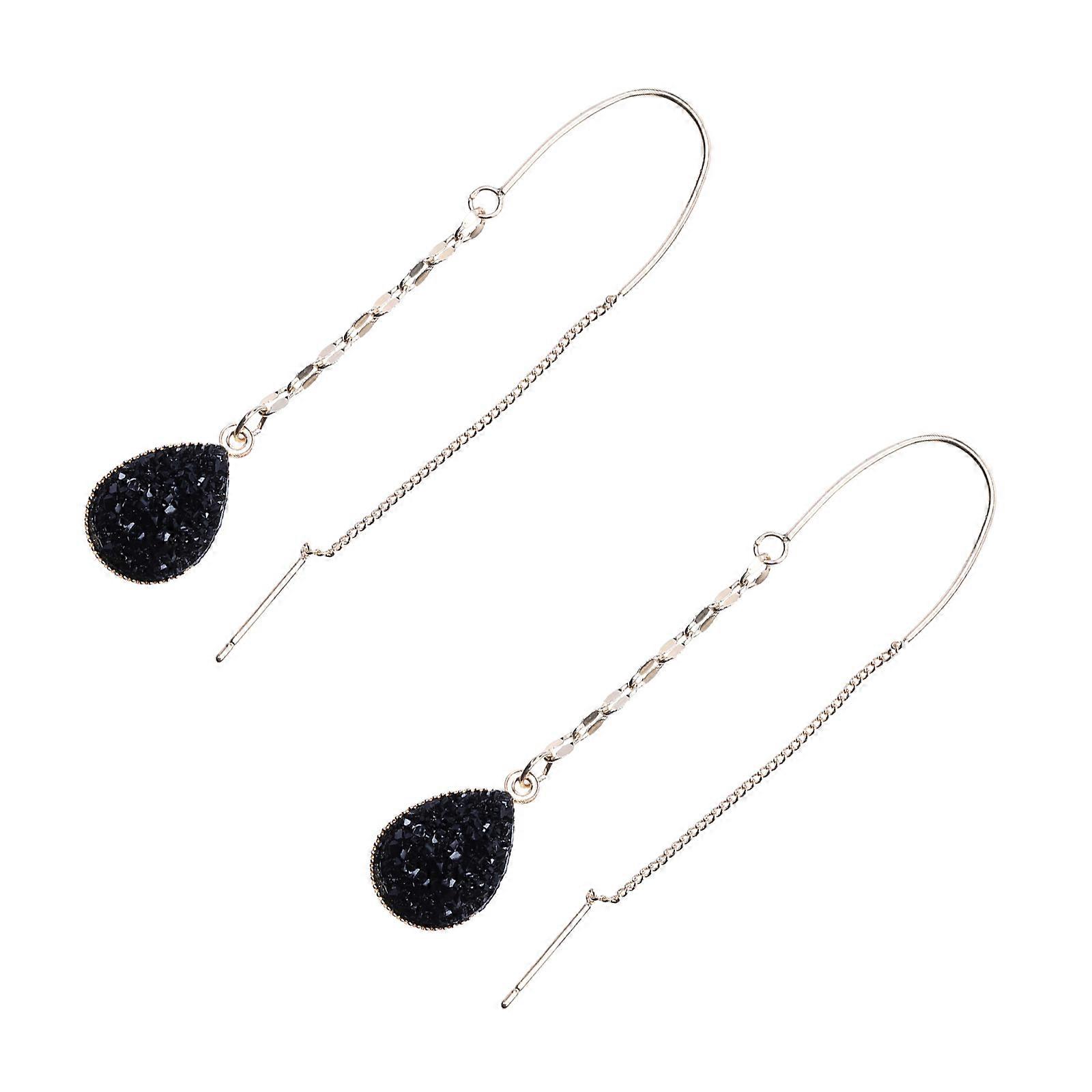 Black Alloy Earrings with Glitter Tassel Design for Home 1 Pair